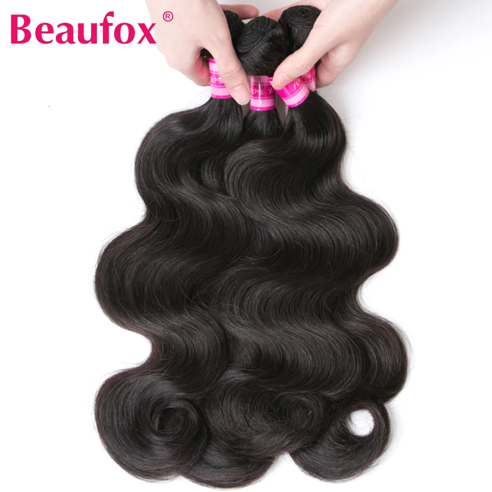 Beaufox бразильские волосы волнистые 4 пряди с закрытием человеческие волосы пряди с закрытием Remy закрытие с пряди человеческих волос