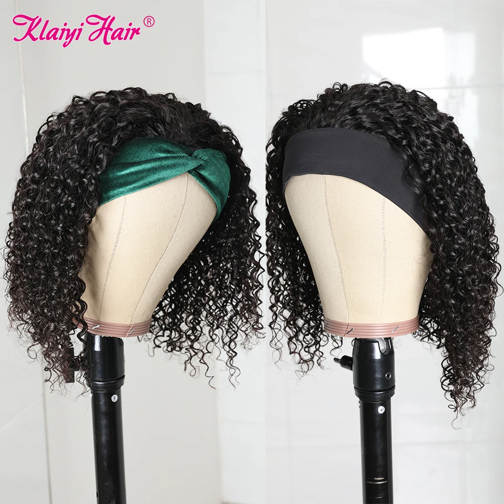 Малайзия кудрявые человеческие волосы боб парик с головной повязкой 100% человеческие волосы парики для женщин натуральный черный Remy волосы шарф головная повязка короткий боб парик