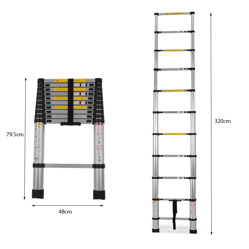 *В сложенном виде удлинительная лестница только0,795 мВысокий. Маленький размер, легко положить в багажник, небольшое пространство и шкаф можно положить. Его также можно хранить в подвале, чердаке или хранилище, чтобы сэкономить место и облегчить транспортировку.