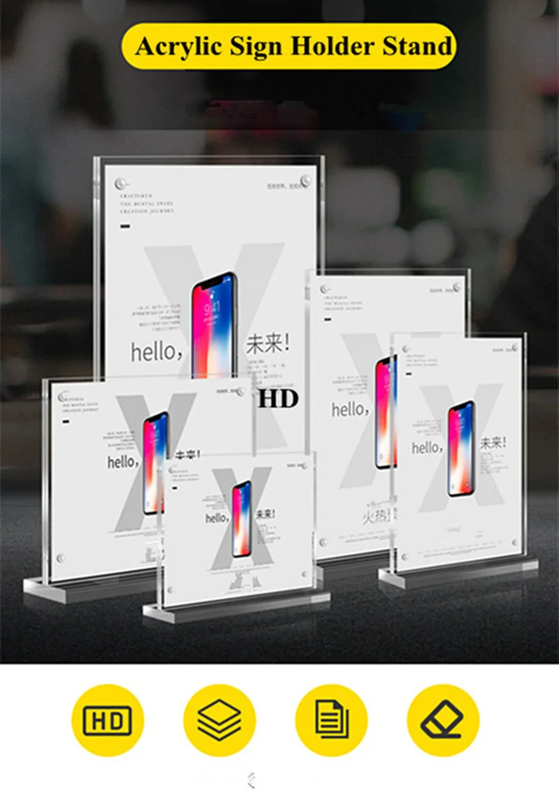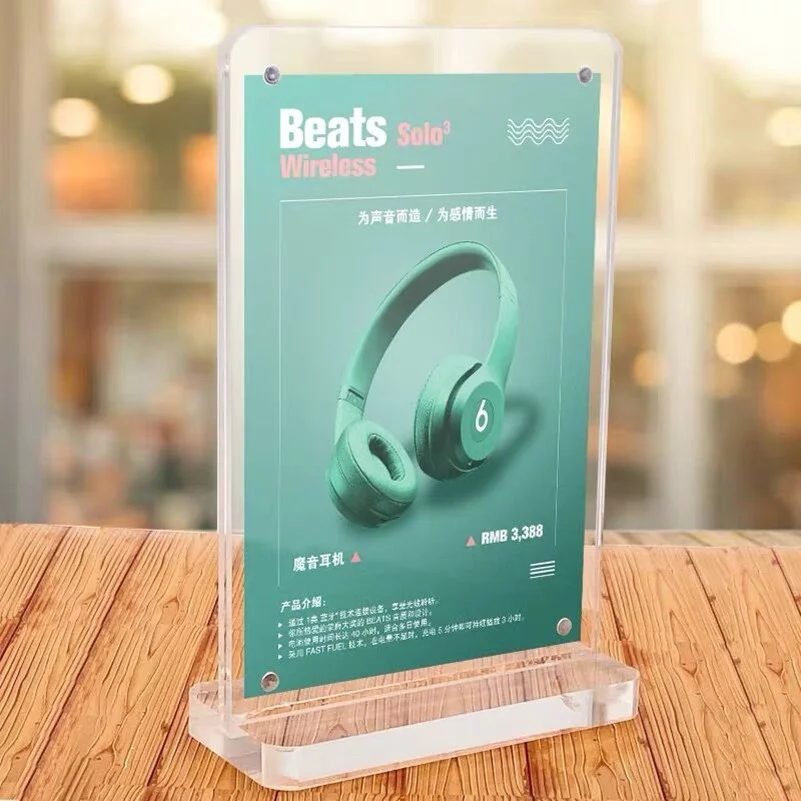Информация о продукте: Название продукта: A6 Магнитный акриловый держатель для знака Бренд: Loripos Номер модели: 8801 Материал: акрил + Магнитный Feture: переработанный, экологически чистый Внутренний размер: 100*150 мм (A6) Применение: ресторан, супермаркет, отель, ресторан, встреча, офис, выставка, функциональный дисплей, рекламный дисплей, дисплей обслуживания, рекламный дисплей, дисплей цены, любое место, которое вы хотите показать знак.