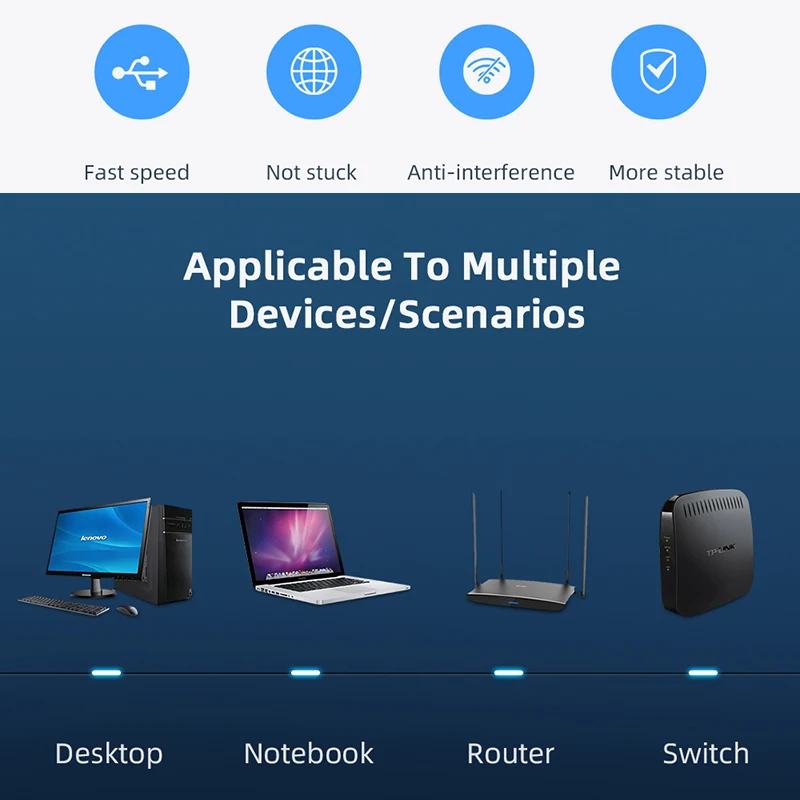 4. Подходит для различных устройств: настольного компьютера, ноутбука, телевизора, маршрутизатора, переключателя, ТВ-приставки