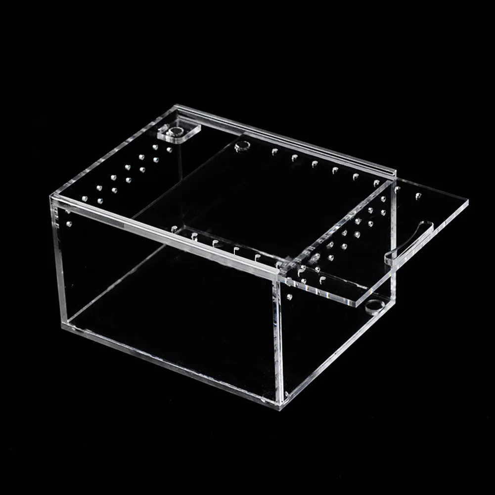 Прозрачная коробка для разведения рептилий акриловая раздвижная крышка типа подачиКоробка Рептилия Танк насекомых пауков Террариум для ящерицы кормушка