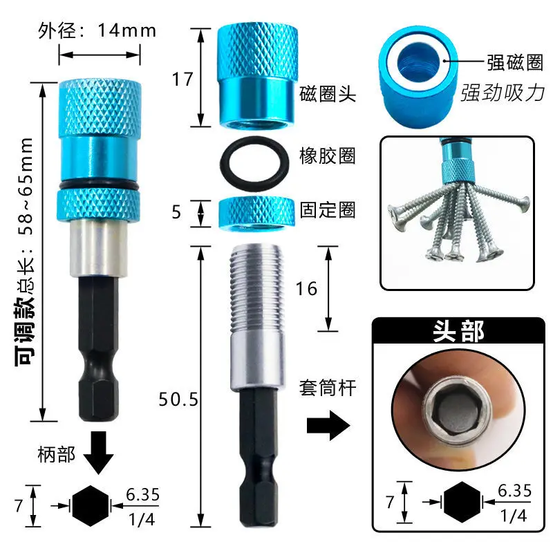 Разработан с помощью сильного постоянного Неодимового МагнитаДля крепления крепежа-Минимизирует падения иУменьшает колебания! Просто сдвиньте рукав вперед, чтобы освободить биту.