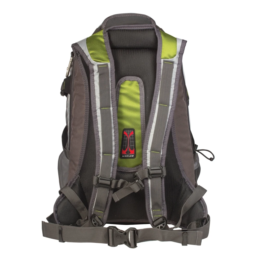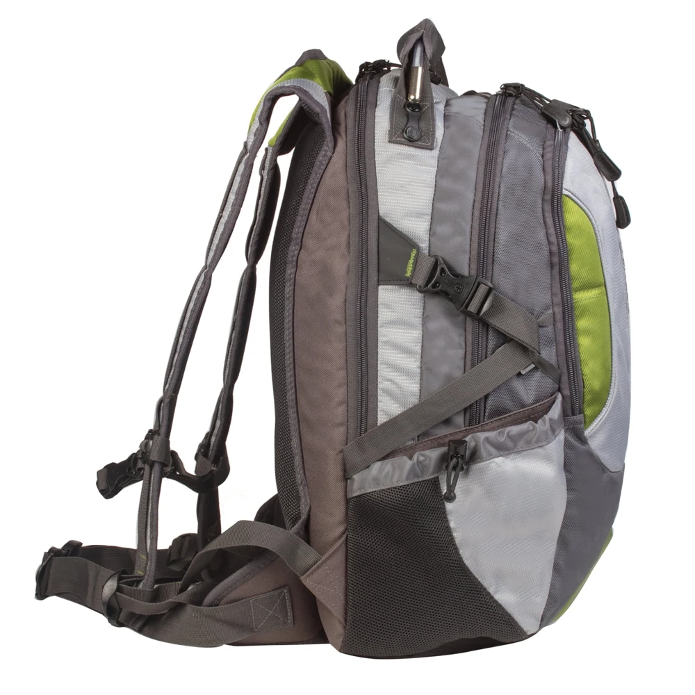 Рюкзак выполнен в сером цвете с серебристыми и зелеными вставками, что делает его универсальным и стильным. Объём 30 л позволяет вместить всё необходимое.