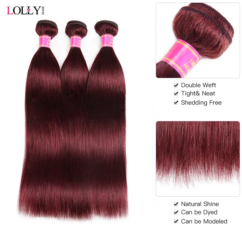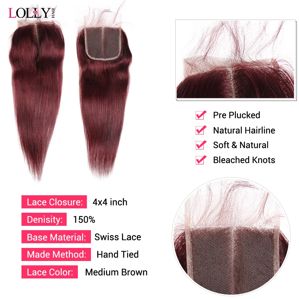 99J пучки с закрытием бордовые красные волосы пучки с закрытием бразильские волосы плетение пучки с закрытием шнурка Remy человеческие волосы