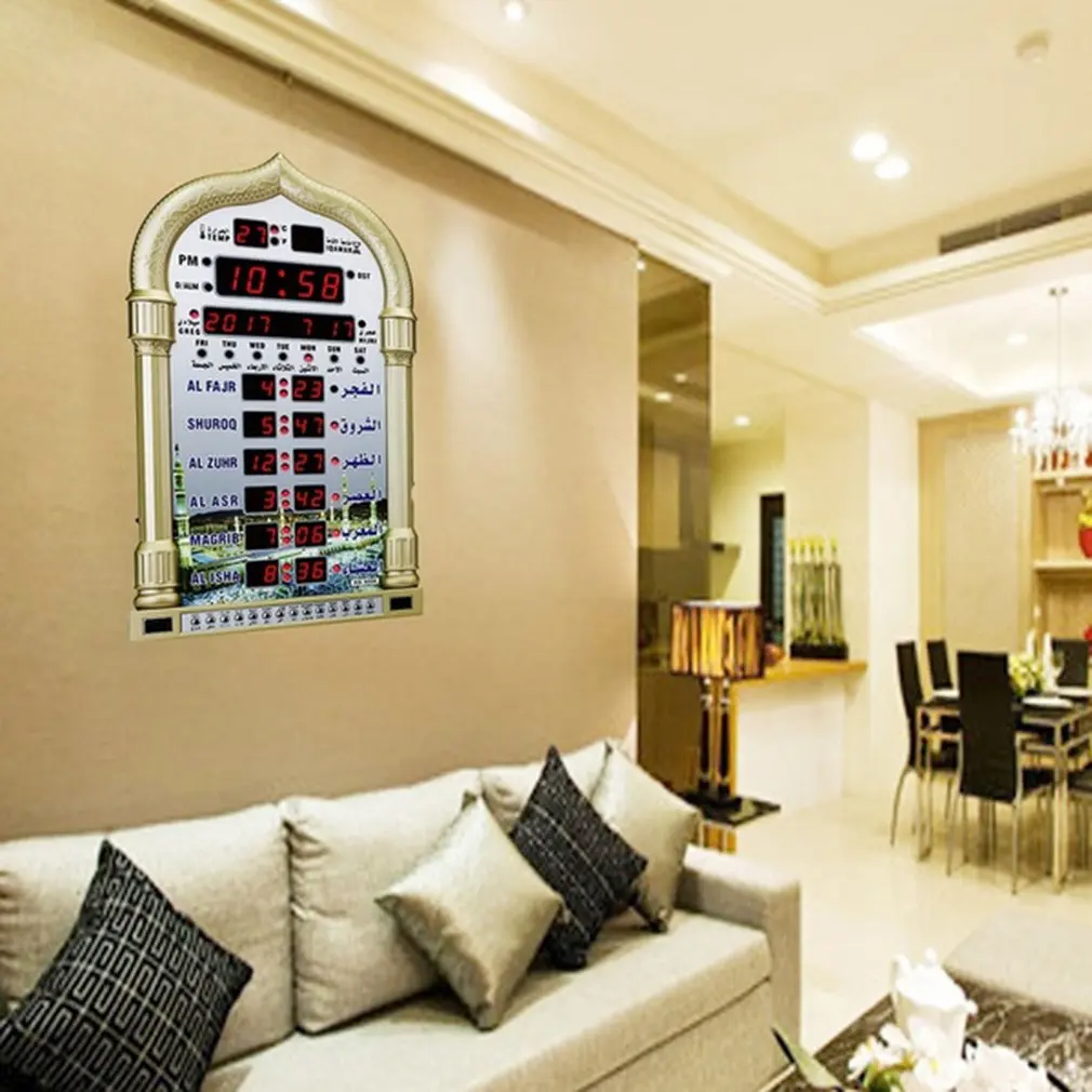Эти мусульманские молитвенные часы поддерживают пульт дистанционного управления и подходят для установки в гостиной, дома или в других подходящих местах.