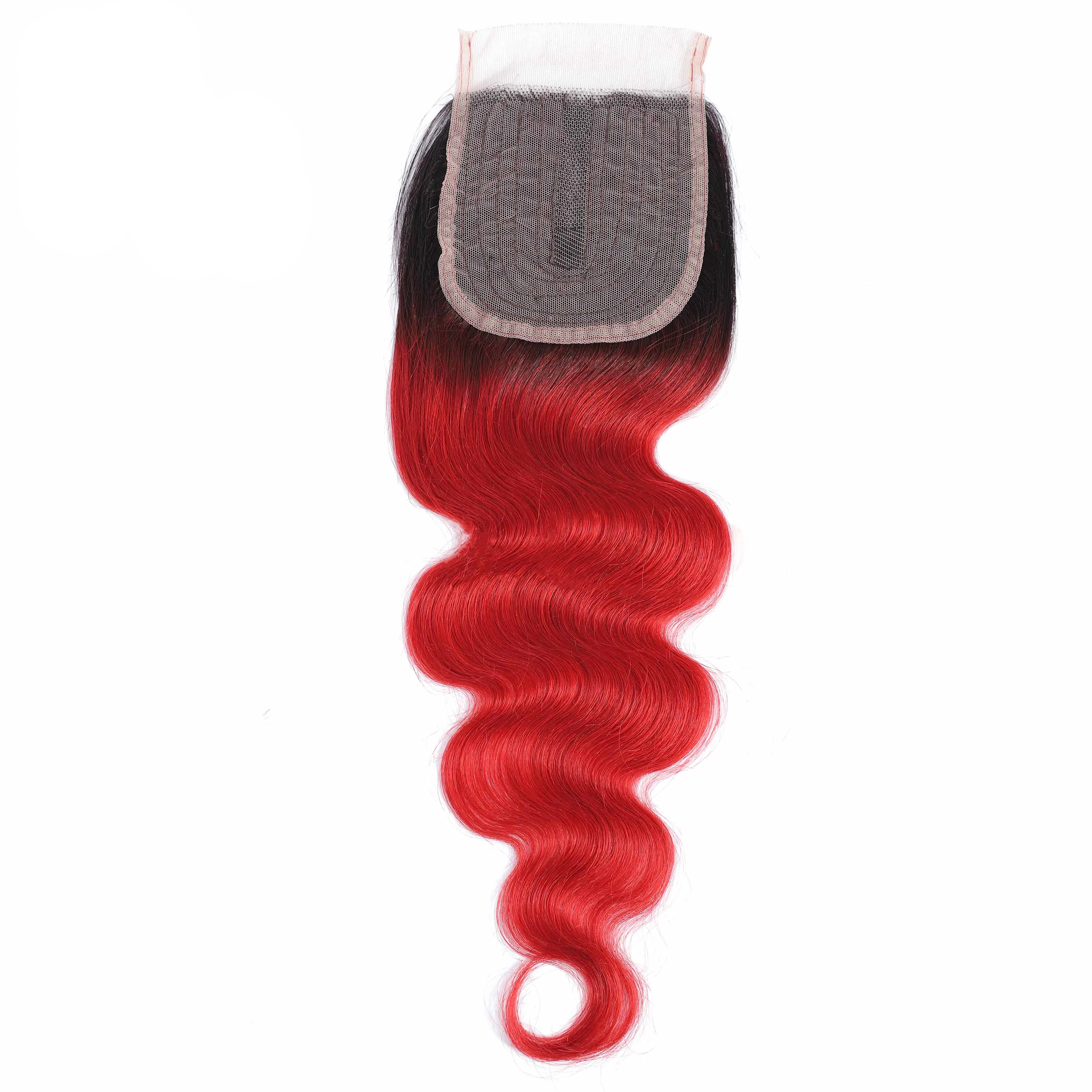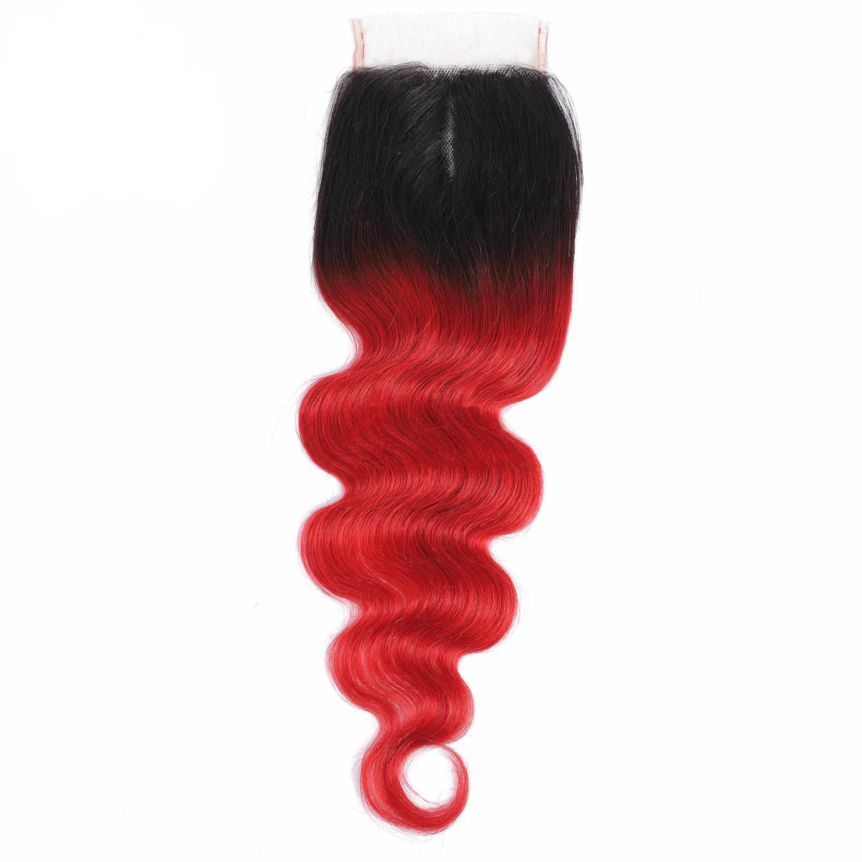 Материал для волос | 100% бразильские человеческие волосы 1B/4/30Red Ombre волнистые пряди с закрытием |