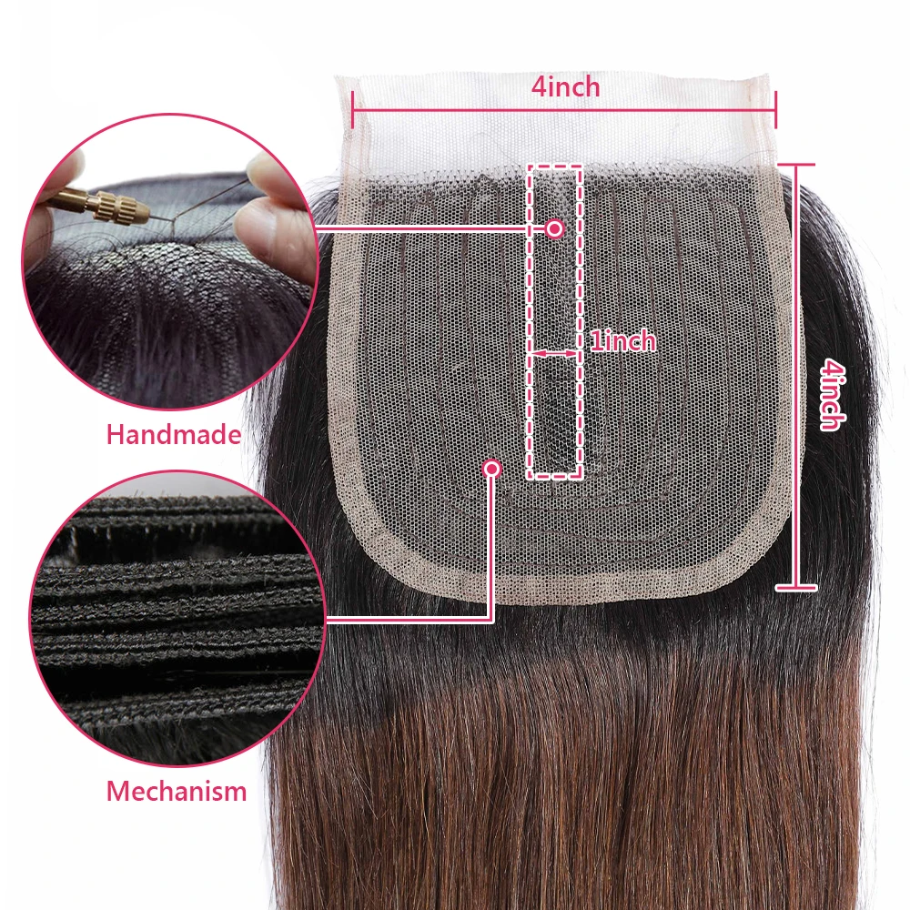 Прямые пряди 1B/4/30 с закрытием бразильские пряди омбре с закрытием 100% волосы Remy T Prat с пряди QUEEN