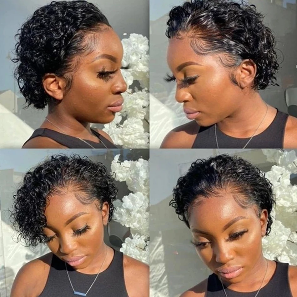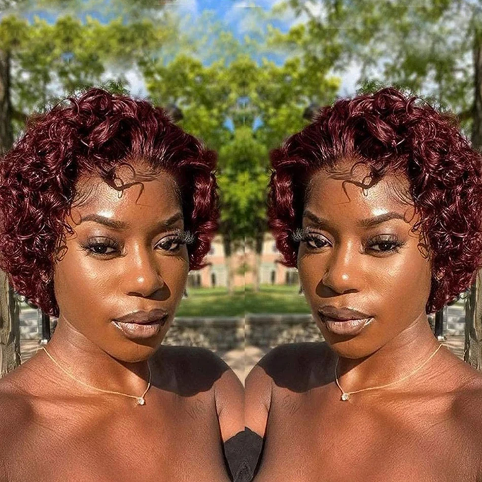 Парик из 100% необработанных человеческих волос Pixie Cut, короткий парик из натуральных волос 99J, 13X1, прозрачный парик из натуральных волос для женщин с волнистой водой, оптовая продажа