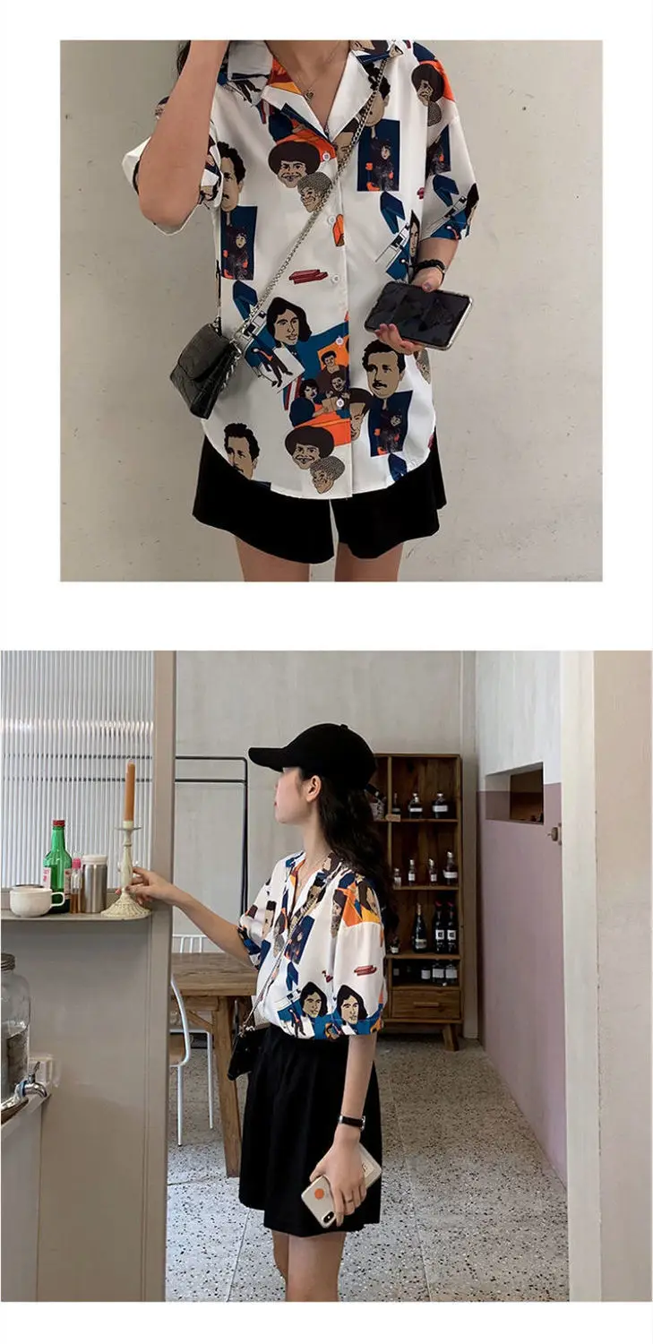 Шикарные подростковые рубашки, свободная повседневная Летняя шифоновая мягкая блузка с принтом для девочек, корсет, кавайная одежда, Женская белая рубашка на пуговицах