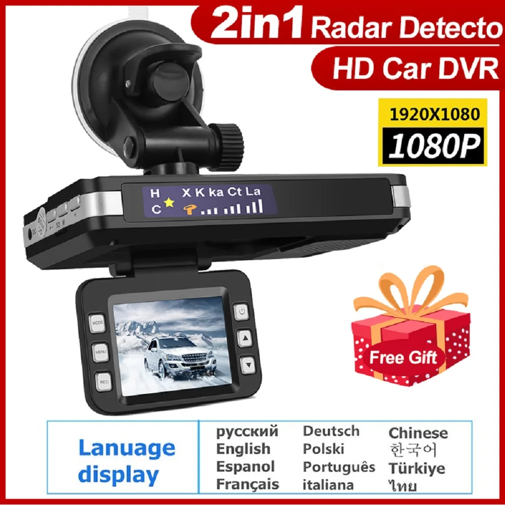 Радар-детектор, Автомобильный видеорегистратор 2 в 1, видеорегистратор s, автомобиль 1080P, вождение, радар, скорость, голосовое оповещение, детектор скорости, ночное видение, рекордер