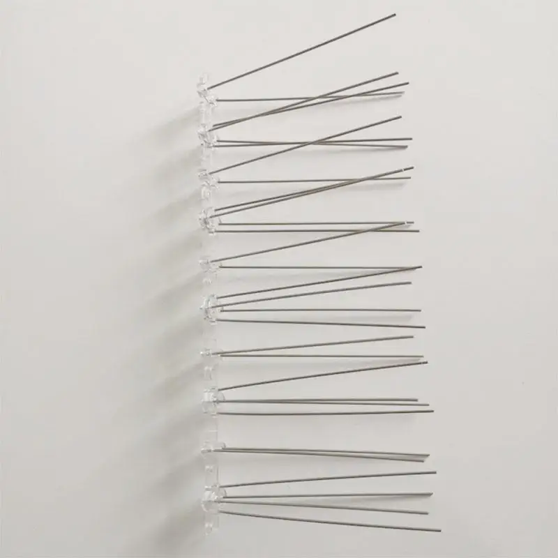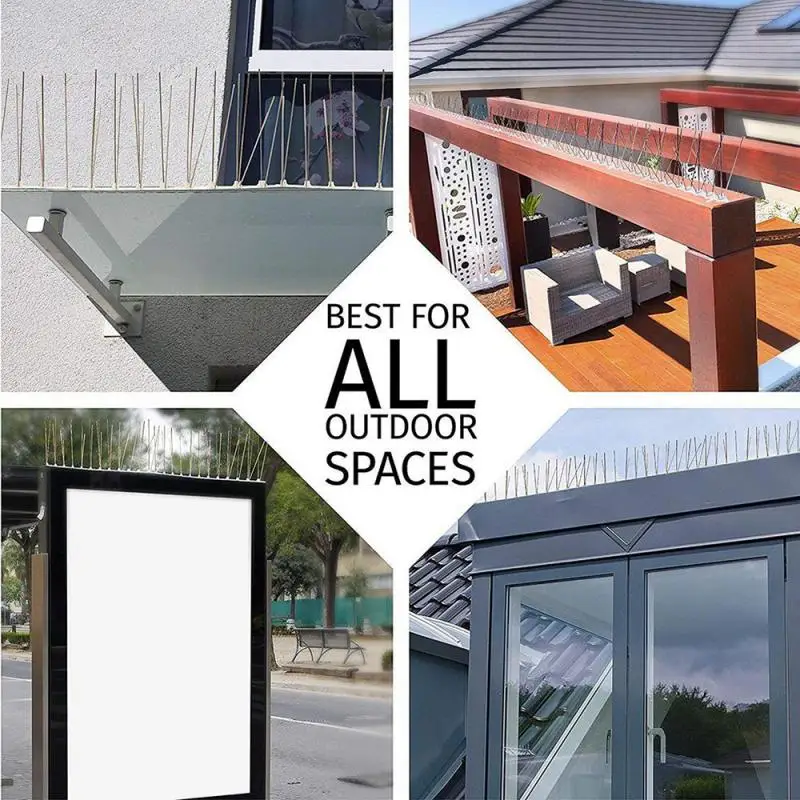 5. Универсальное Использование: шипы могут быть установлены на любых возвышенных областях, таких как крыши, дымоходы, беседки, даже вблизи дисковой телевизионной антенны (без радиочастотных помех), башен, клапанов, посадок, опорных конструкций, столбы, проходы, изогнутые поверхности или любой район, загрязненный птичьими помпонами.