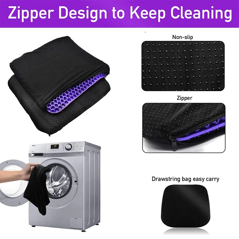 Гелевая подушка для сиденья с дышащей сетчатой тканью, нескользящая крышка с застежкой-молнией, гладкая, приятная для кожи, удобная, дышащая, безопасная и легко моющаяся.