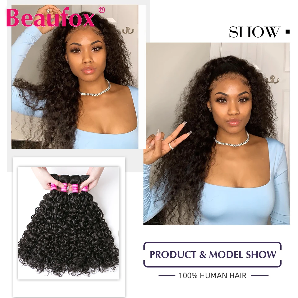 Beaufox, волнистые пряди, индийские вьющиеся человеческие волосы, пряди, 100% человеческие волосы, 1/3/4 шт, Remy волосы для наращивания, 8-30 дюймов