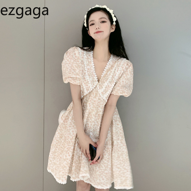 Женское платье средней длины Ezgaga, однотонное Элегантное однобортное платье с коротким рукавом в французском стиле на лето 2021