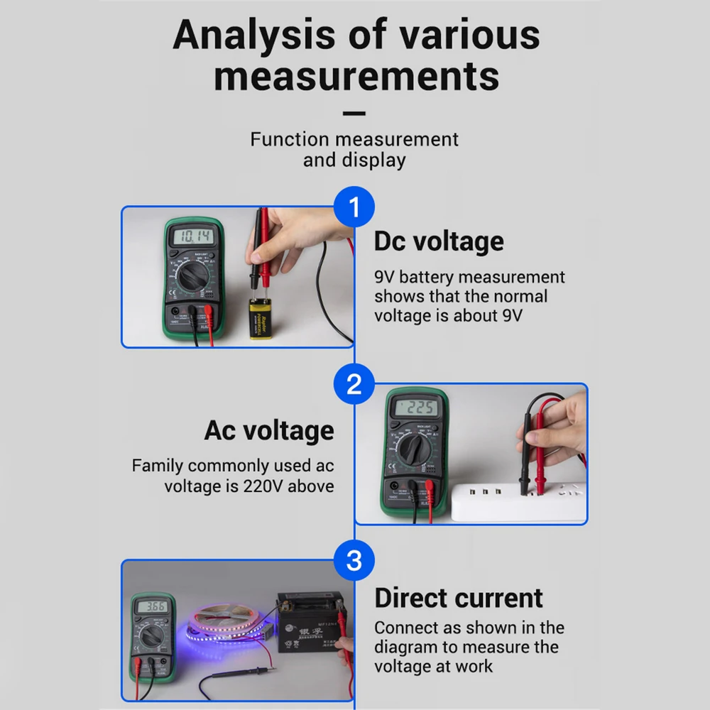 Цифровой мультиметр является практичным инструментом для электрика. Он прост в эксплуатации и показания указаны непосредственно на экране. Его можно использовать для ремонта всех видов печатных плат. Это также идеальный обучающий инструмент для студентов.