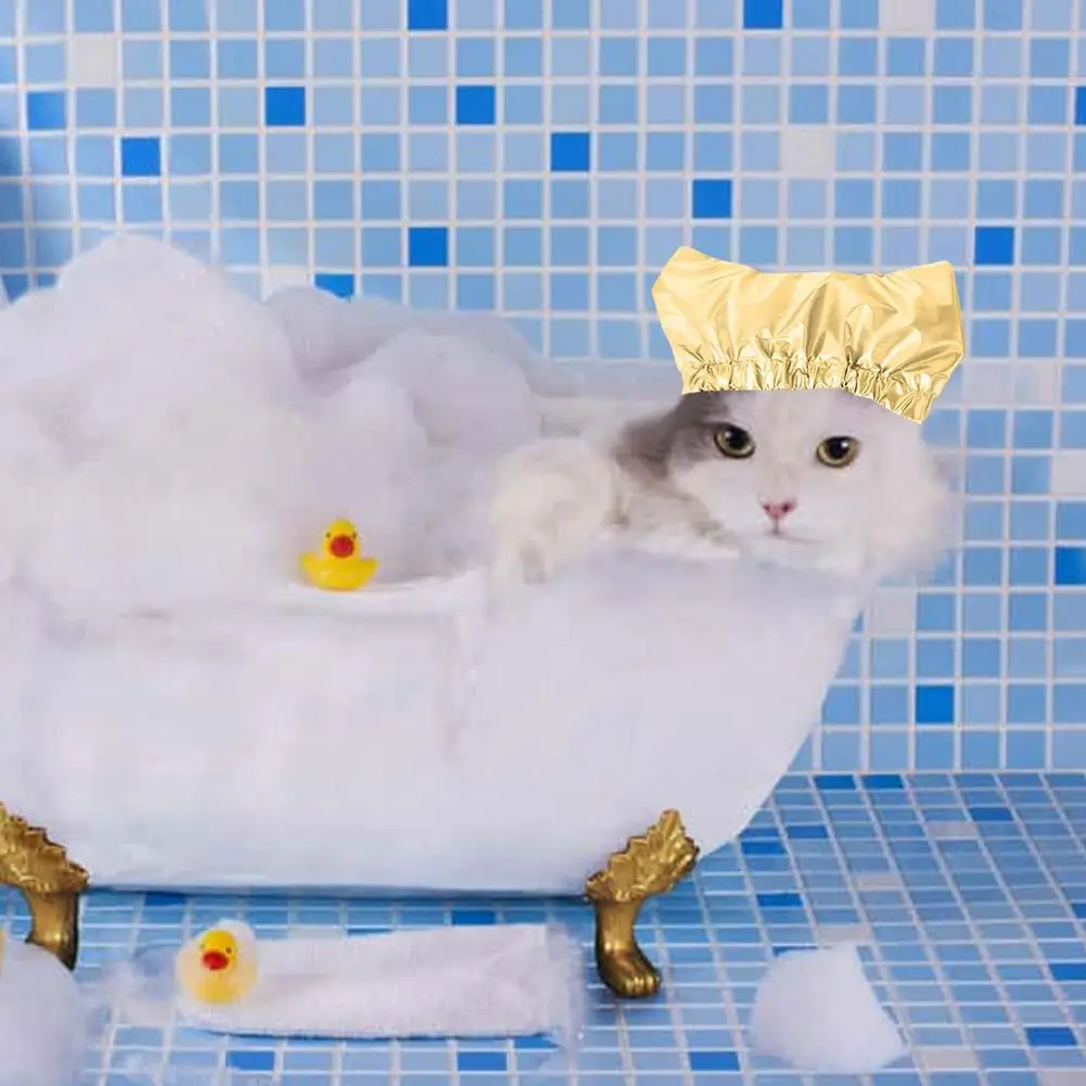 Шапочка для душа кошки, водонепроницаемая регулируемая, для домашних животных, регулируемая защита для ушей, для ванной, милые шапки для домашних животных, кошачьи инструменты для уборки ванной комнаты для домашних животных