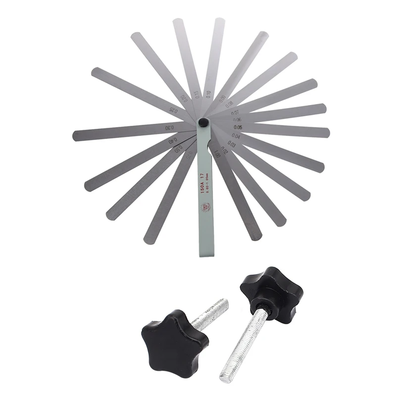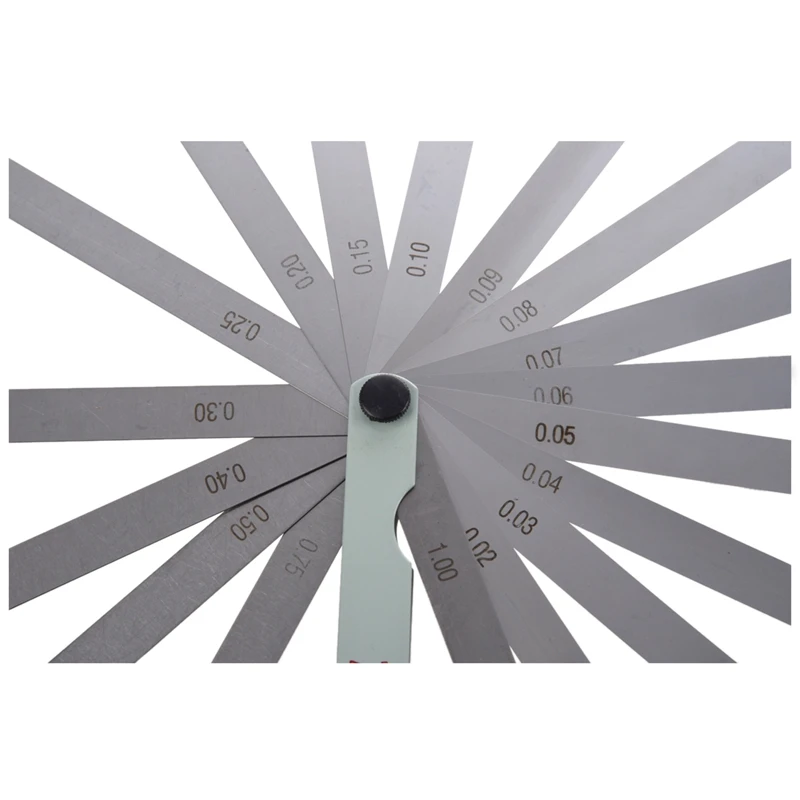 Для легкой идентификации, каждое лезвие постоянно маркируется толщиной лезвия этот набор содержит 17 лезвий, от 0,02 мм до 1,00 мм, лезвия изготовлены из высококачественной углеродистой стали толщина лезвия: 0,02, 0,03, 0,04, 0,05, 0,06, 0,07, 0,08, 0,09, 0,10, 0,15, 0,20, 0,25, 0,30, 0,40, 0,50, 0,75, 1,00 мм новый продукт может быть жирным для анти-rustiness, пожалуйста, очистите его перед использованием