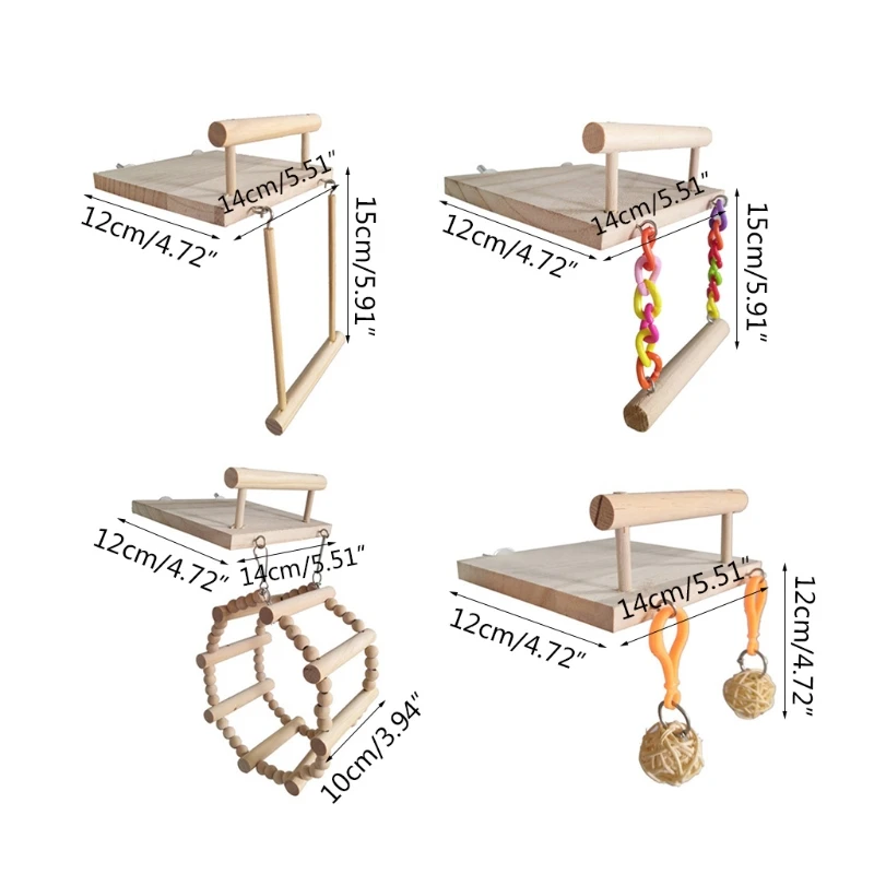 1. There are four choices: Platform + Pendant Rattan Balls, Platform + Pendant Ferris Wheels, Platform + Pendant Wood Swing, and Platform + Acrylic Swing. Various wood combinations provide a comfortable playground for your pet bird, relieve her boredom and increase activity levels.