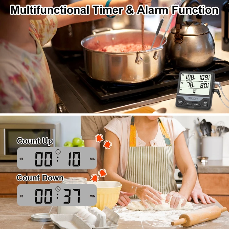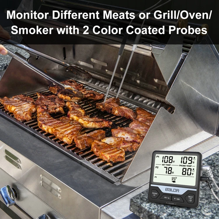 Baldr цифровой двойной Зонд термометр для барбекю Кухня Мясо приготовления пищи водонепроницаемый ЖК-дисплей регулировка температуры набор монитор барбекю таймер инструменты