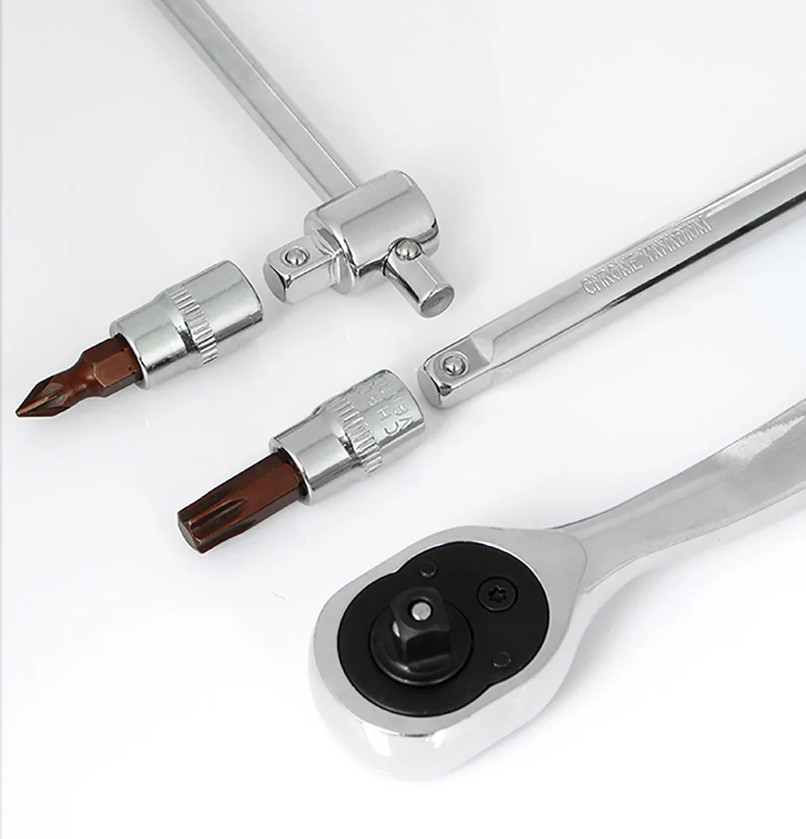 Особенности союзки из 1/4 (6,35 мм) разъем может использовать 1/4 серии с длинными и короткими рукавами, с длинными рукавами, пуля рукав биты и т. д., или непосредственно использована как прямой стержень. Задний интерфейс 1/4 может быть подключен к маленькому летающему гайковерту и т. д., подходит для заводов, авторемонтных магазинов, семей и личного использования.