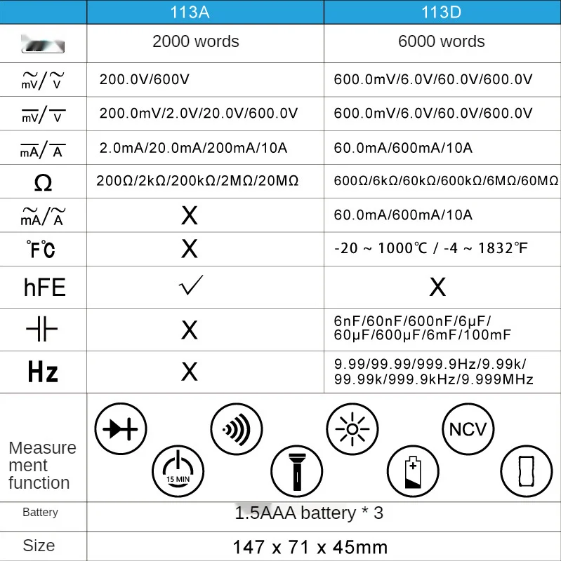 8. Диапазон емкости: 60nF/600nF/6uF/60uF/600uF/6mF/100mF Разрешение: 0.001nF/0.01nF/0.1nF/1nF/10nF/100nF/0,1 uF/0.001mF