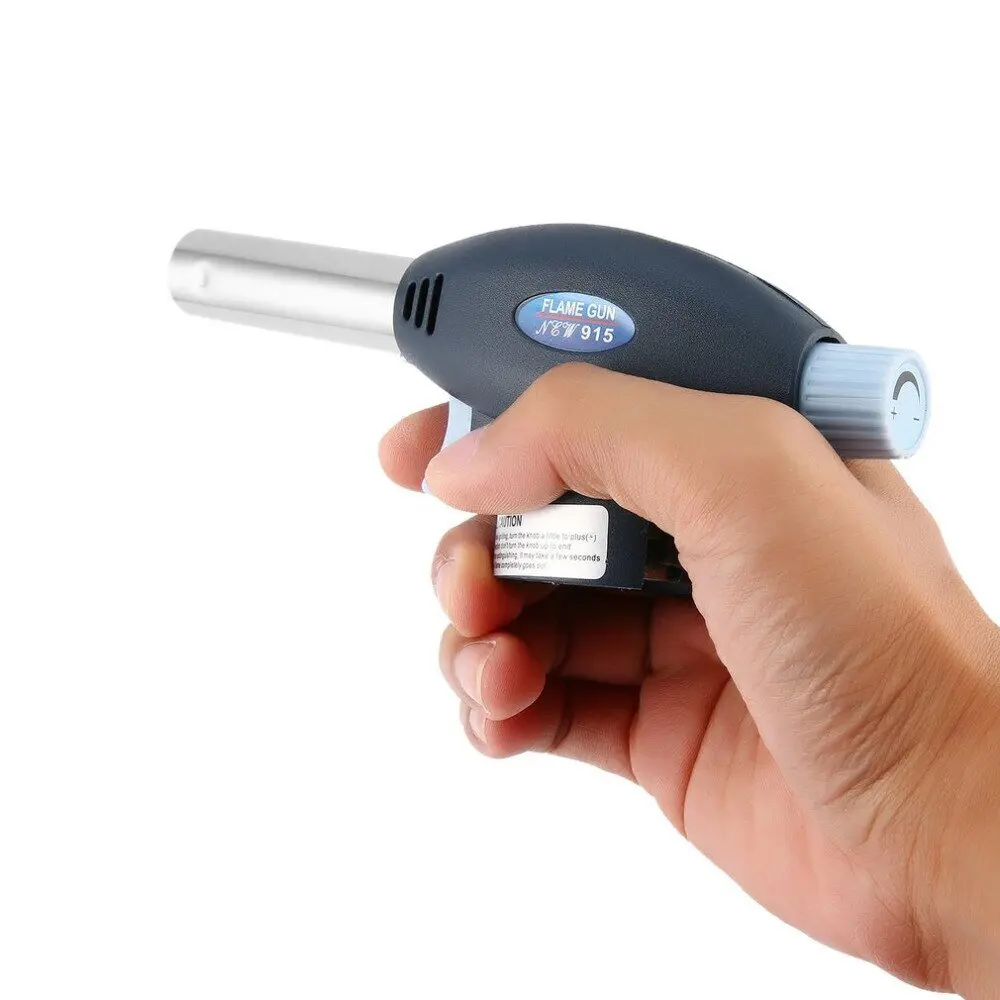 Автоматическая газовая горелка-насадка Flame Gun 915 с пьезоподжигом. Благодаря наличию пьезоподжига, такой горелкой удобно пользоваться одной рукой. Рекомендуется для работы с термоусаживаемыми трубками, перчатками, муфтами; для плавления и сварки изделий из пластиков и стекла; удаления краски; обработки поверхностей на производстве и в лабораторных условиях; для разморозки замков, водопроводных труб, продуктов; для копчения продуктов или карамелизации десертов; для украшения процесса подачи блюд; для работ в саду и огороде, для быстрого и экологичного поджига дров, угля. Меры предосторожности: Перед началом работы с газовой горелкой Flame Gun 915 необходимо ознакомиться с мерами предосторожности и инструкцией по эксплуатации на упаковке горелки. В течении первых двух минут горелка должна разогреться. Во избежании вспышек газа на время разогрева не допускается отклонение горелки более чем на 75 градусов от вертикального положения. После прогрева вы можете работать с горелкой под любым углом. Замену газового баллона производить только на открытом воздухе, вдали от источников открытого огня, раскаленных предметов, электронагревательных приборов и других возможных источников воспламенения. При работе с горелкой необходимо обеспечить достаточное ее удаление от траектории движения людей и животных,для того чтобы исключить возможный контакт с работающей горелкой и нагретыми предметами. Характеристики: