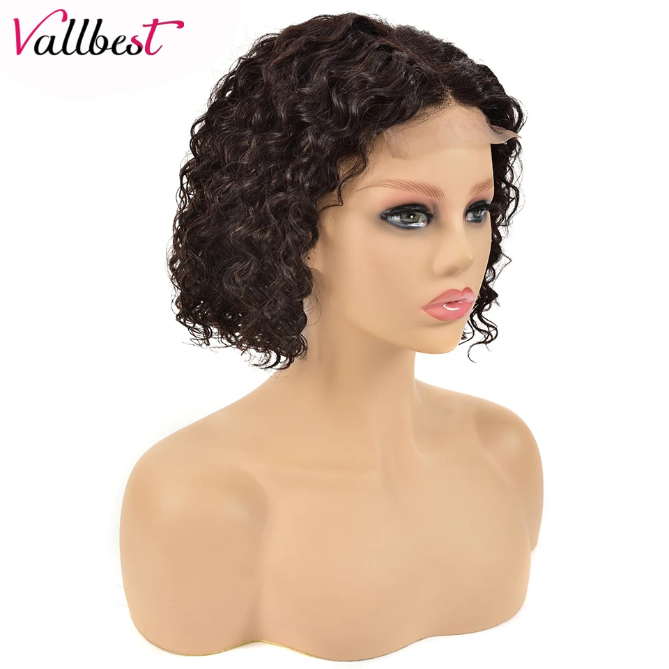 Vallbest cheveux 13X4 vague profonde perruque frontale courte Bob bouclés cheveux humails dentelle frontale perruques vente brésilien lâche vague profonde fermeture perruque
