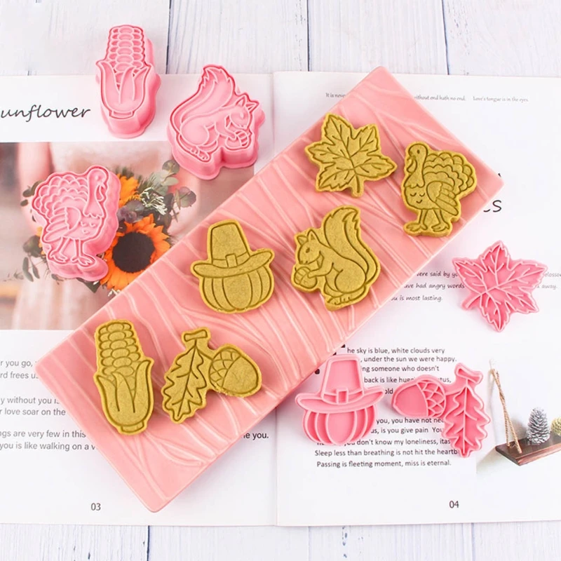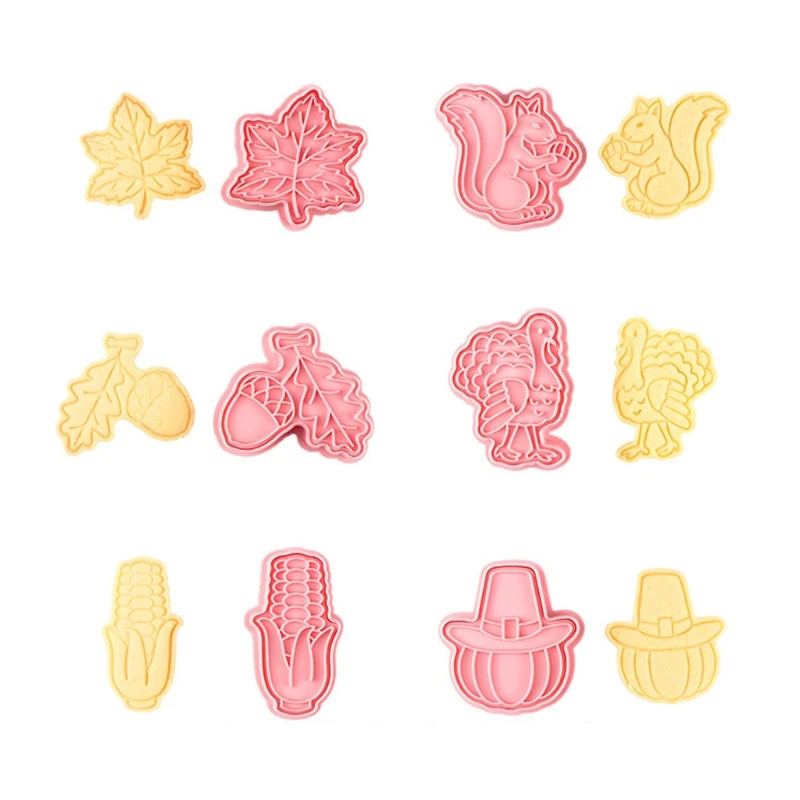 Посылка включает в себя 6 шт. мультяшных формочек для печенья: Кленовый лист, белка, сосновые шишки, Турция, кукуруза, тыква.