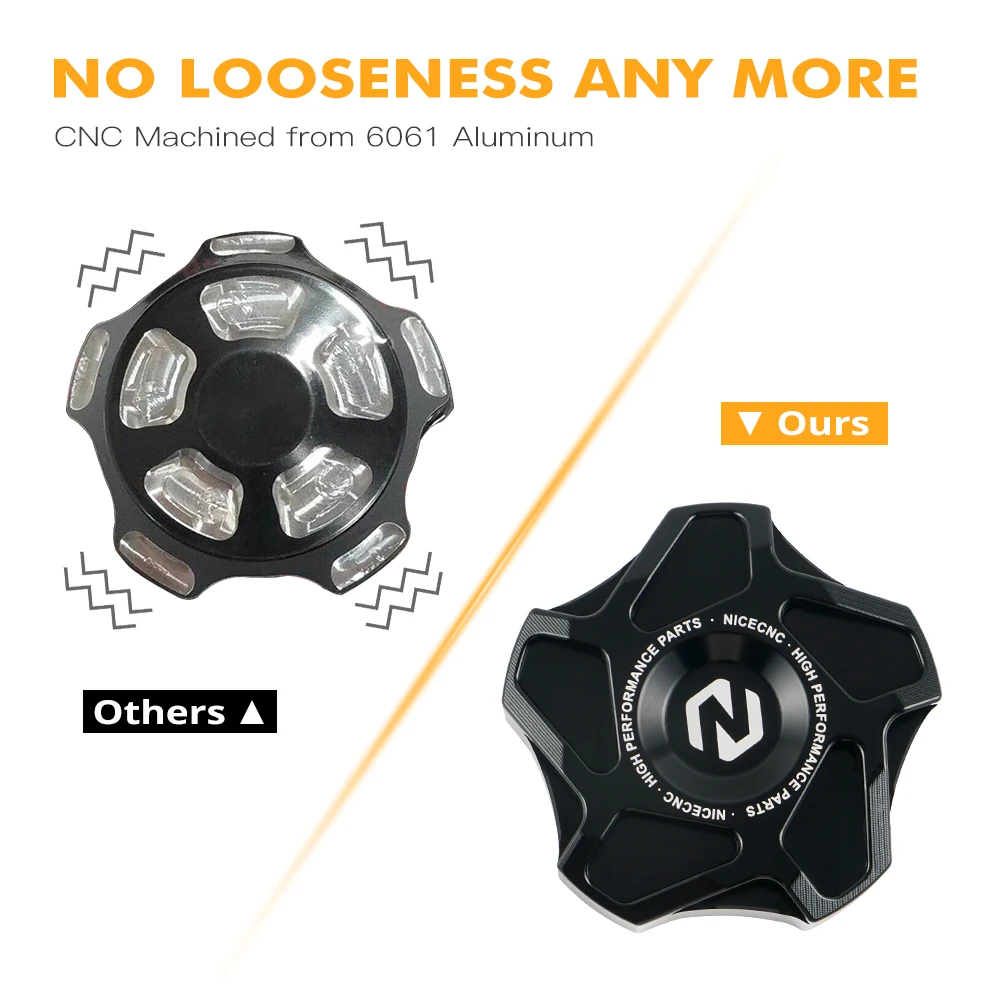【Secure fit】для низкого качества газовой крышки, несмотря на то, что вы закрутили его плотно весь путь вокруг, он имеет свойство получить свободно, когда вы едете на Ухабистой Дороге. NiceCNC разработала хорошо сделанную алюминиевую газовую крышку 6061, обработанную по новейшей технологии CNC, что позволяет надежно сидеть на вашем топливном баке. Кроме того, с течением времени нитки не будут разрезаны.
