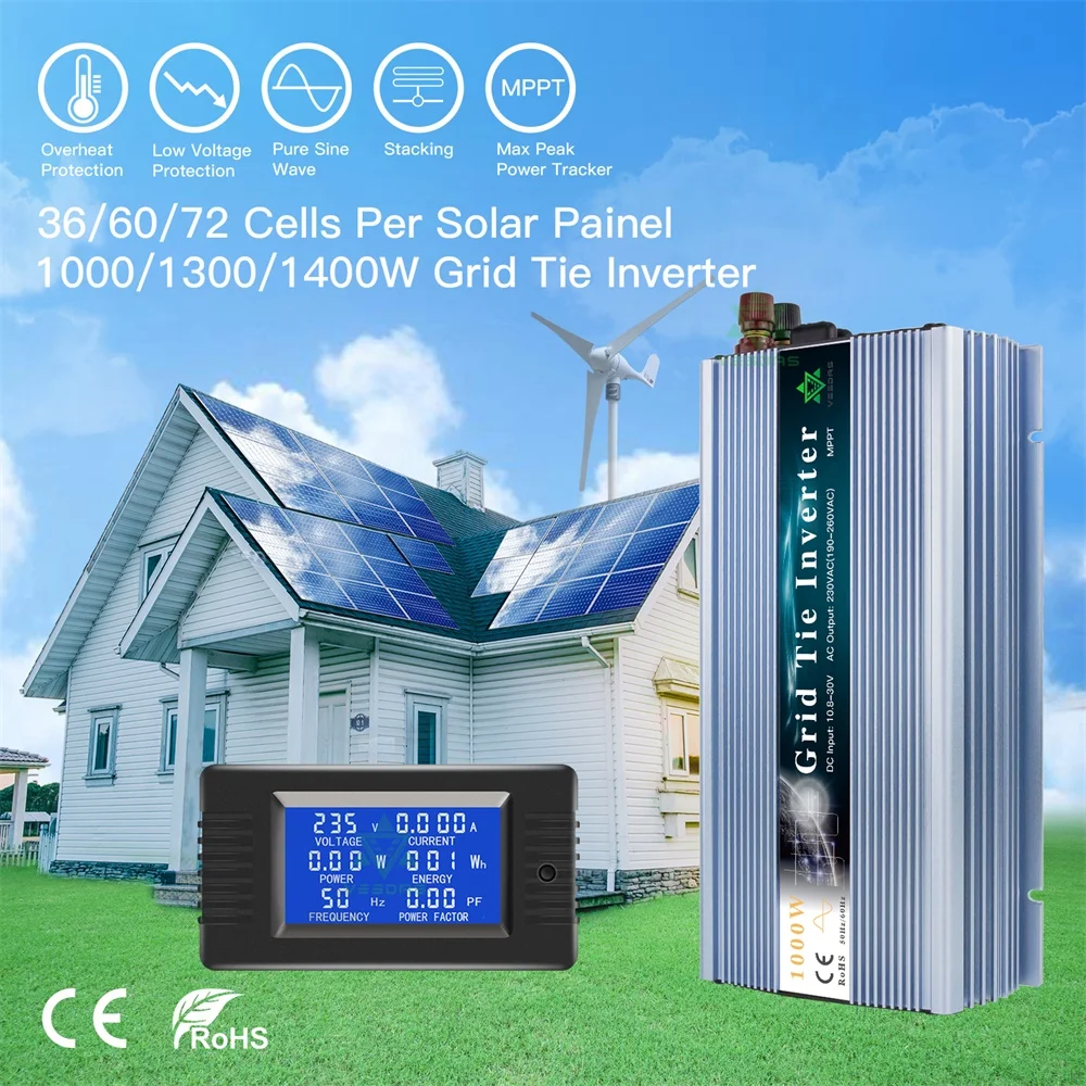 Smart grid tie inverter-это компактный блок, который напрямую преобразует постоянный ток в переменный ток для питания приборов и офисного оборудования и подключения к сетке. Выход переменного тока от Smart micro inverter синхронизирован и находится в фазе с сеткой утилиты. Это ключевое устройство для систем генерации электроэнергии, таких как система генерации электроэнергии PV, система генерации энергии ветровой турбины.