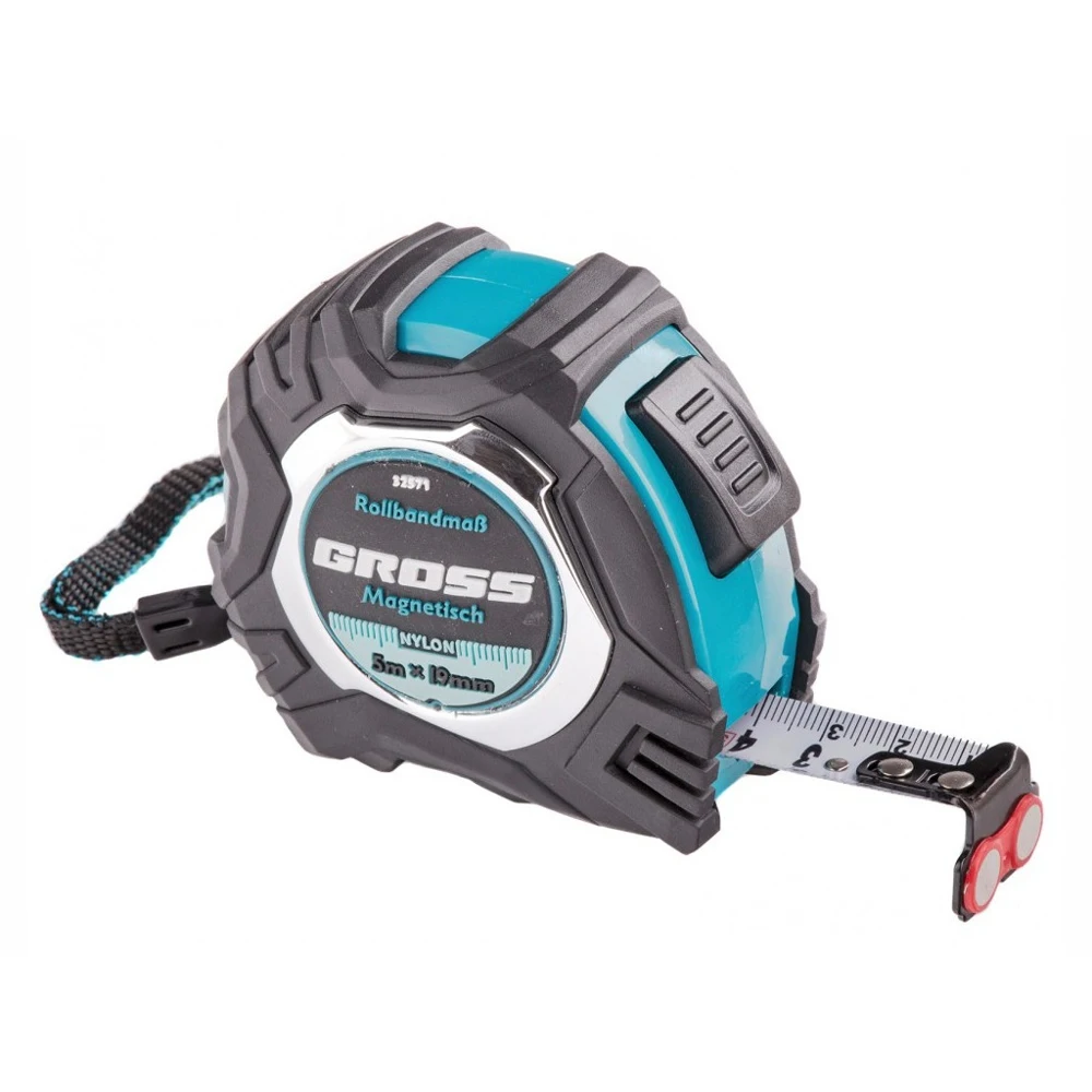| language_detail+ | Длина 5 м Стальная лента с нейлоновым покрытием шириной 19 мм Метрическая шкала Обрезиненный корпус Автоматическая фиксация Магнитный зацеп Техническое описание Материал ленты: сталь Длина: 5 м Ширина ленты: 19 мм Измерительная шкала: метрическая Особенности: магнитный зацеп, обрезиненный корпус, покрытие ленты нейлон |