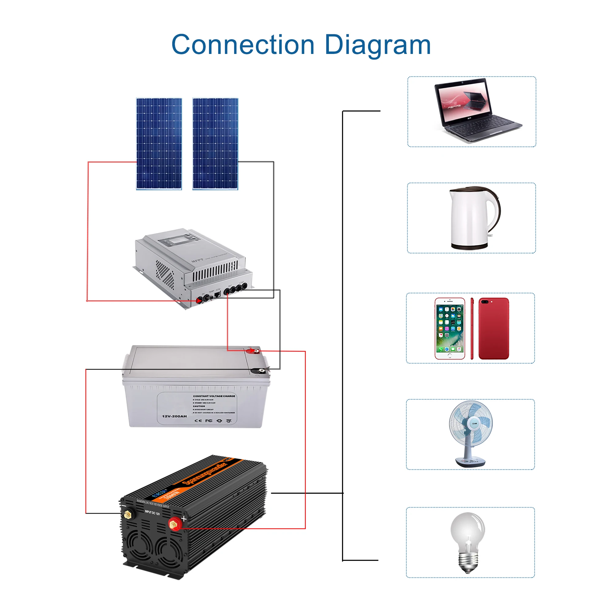 -Двойной Интеллектуальный вентилятор контроля температуры для уменьшения ненужной траты энергии батареи; Когда внутренняя температура инвертора ≥ 45 ± 5 °C, вентилятор начинает работать.