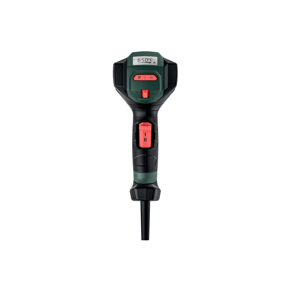 Мощность: 2300 Вт. Производительность: 150/500 л/мин. Температура: 80-650 °С. Регулировка температуры воздуха: плавная, с шагом в 10 °С. Регулировка воздушного потока: бесступенчатая. ЖК-дисплей. 4 программируемых и запоминаемых режима.