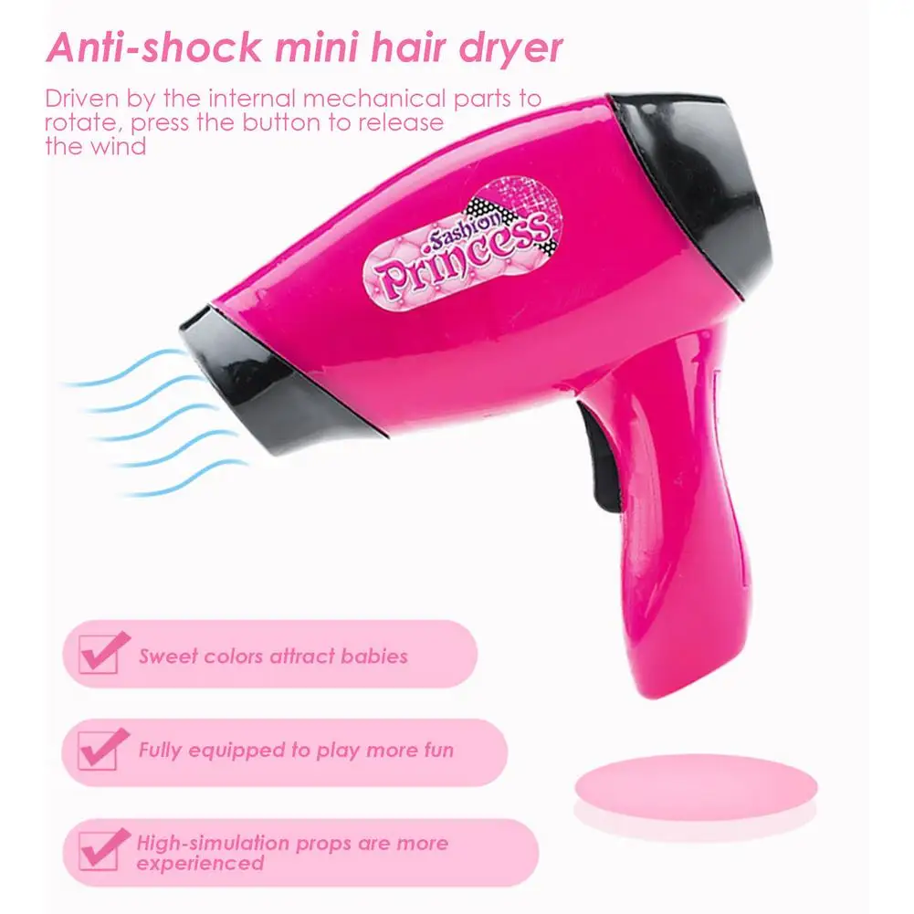 1. Упаковка включает в себя: полный набор косметических игрушек для девочек, игровой домик для парикмахерских, включает в себя куклу половинной длины, фен (требуется 2 батарейки ААА, вам нужно взять с собой), тени для век, Кисть для макияжа, заколка для волос, имитирующая прямую заколку для волос, косметическая карта, галстук для волос и т. д. Содержит все парикмахерские и макияжные инструменты для игрушек для девочек.