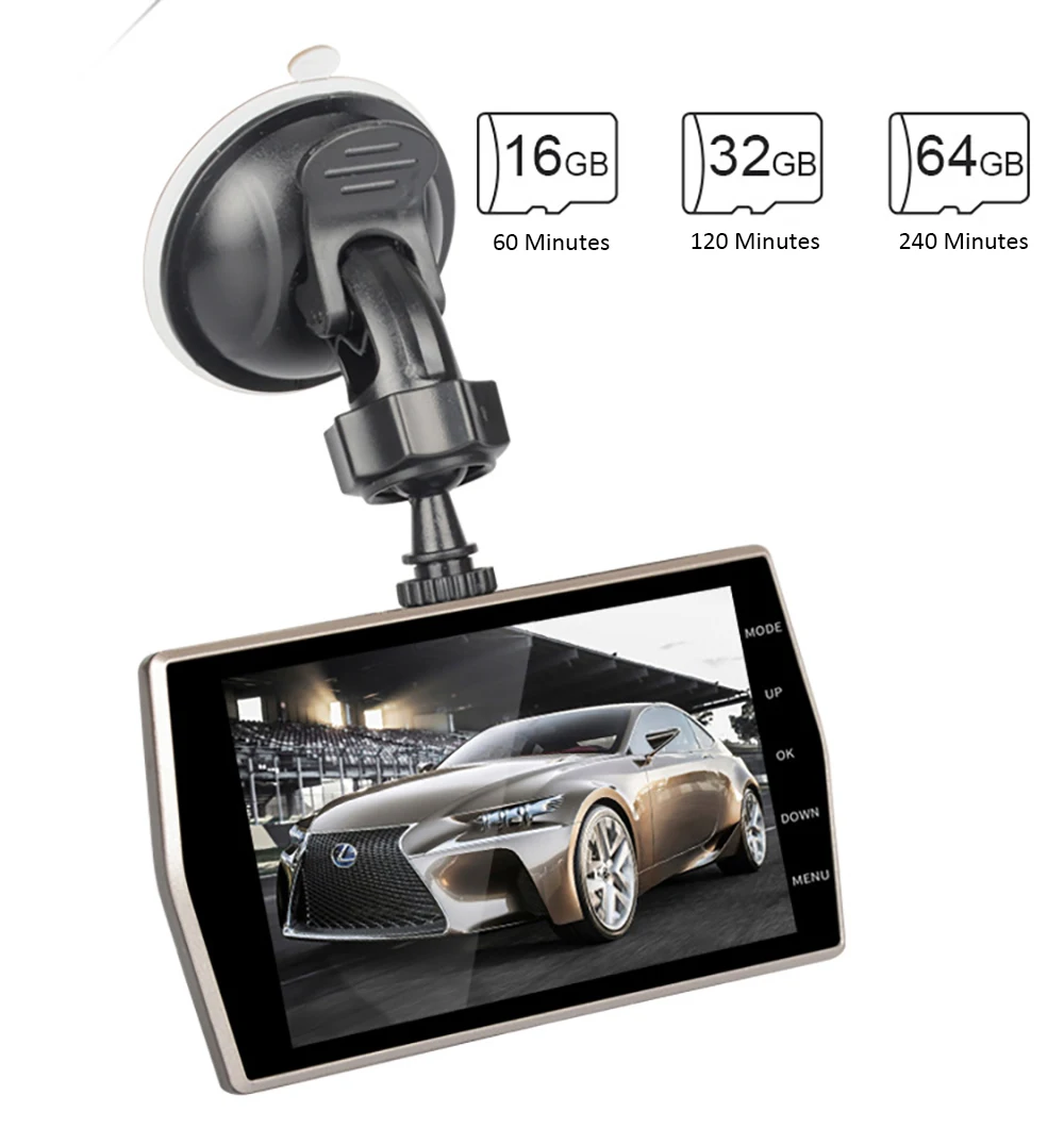 Видеорегистраторы для автомобилей 4,0 дюймов Экран Full HD 1080P Двойной объектив заднего вида Dash Cam автомобиля Камера видео Регистраторы 24 часа в сутки для парковочной системы автоматический детектор движения Автомобильная записывающая камера
