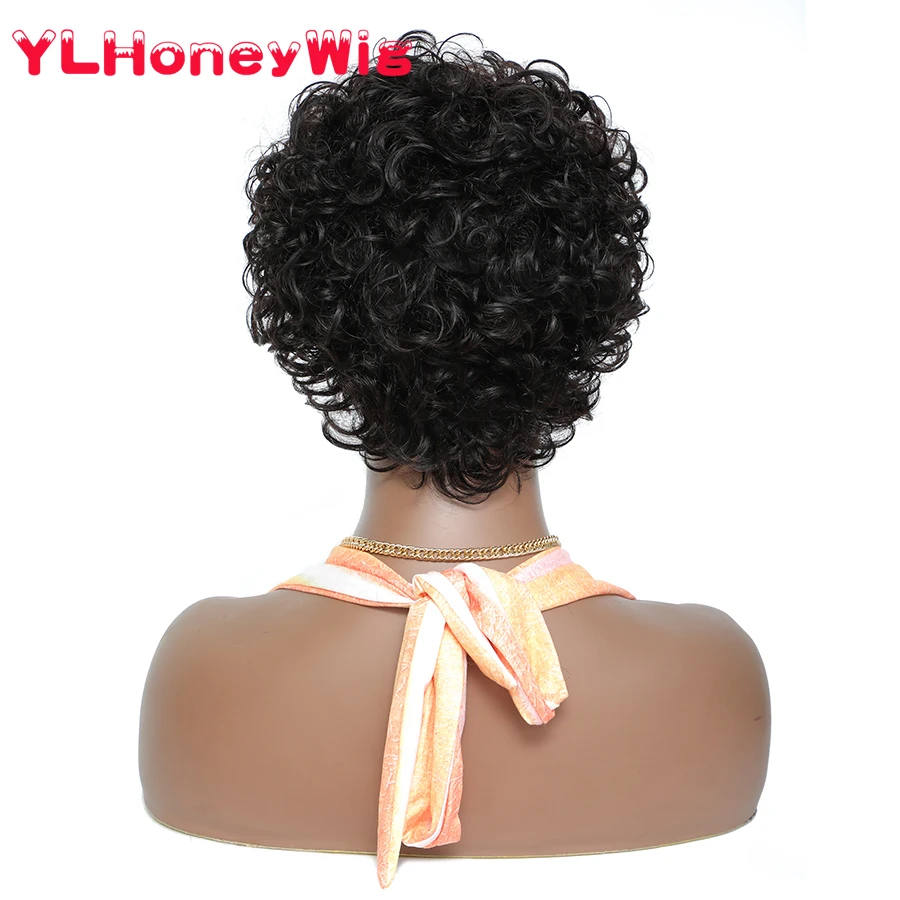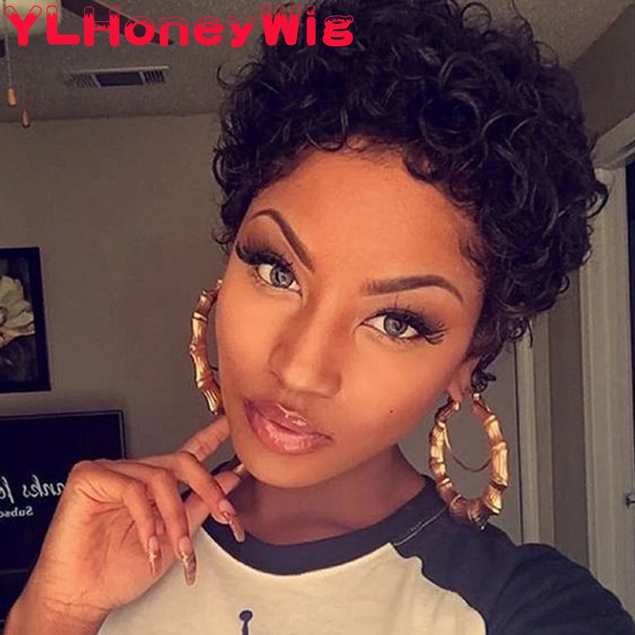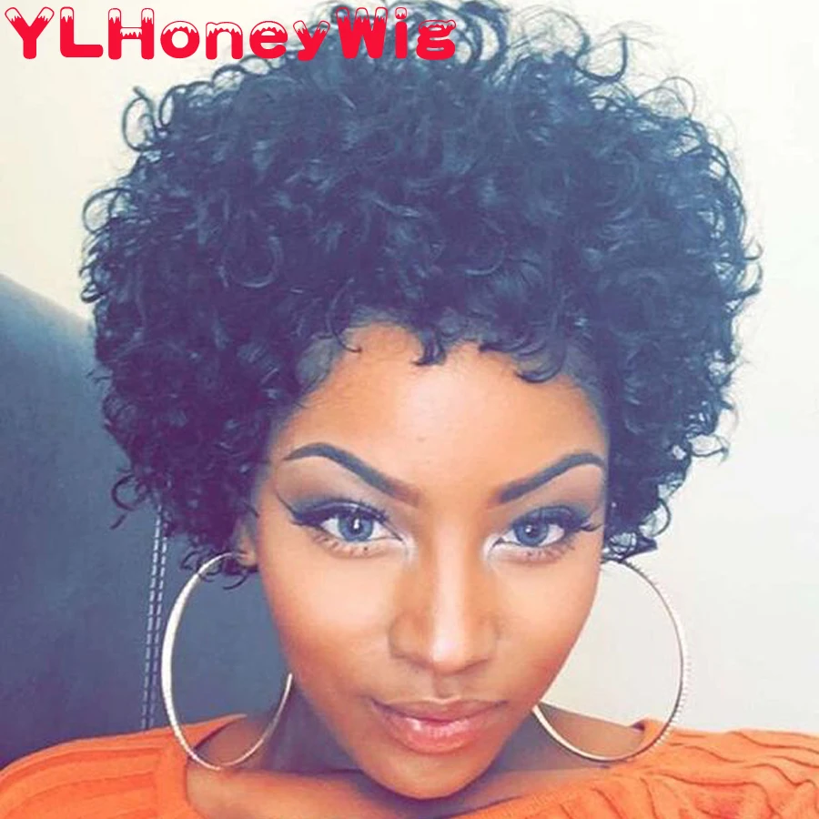 Модные короткие кудрявые волосы, полностью сделанные на машинке, дешевые человеческие волосы, парик для женщин, Боб, не кружевные передние человеческие волосы, парик Pixie Cut Perruque Cheveux Humain