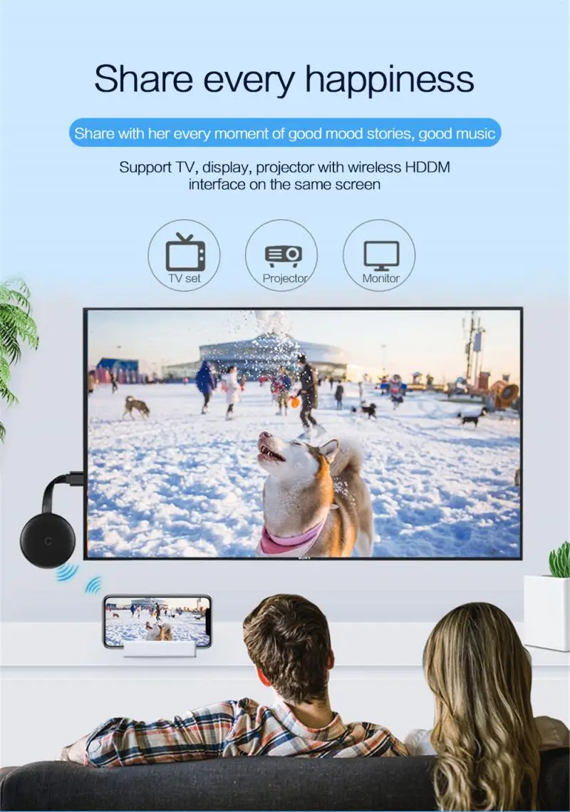 Поддерживается Miracast/Airplay/DLNA. Доступно для Android 4,4 + и iOS 9,0 +, а также для MacOS 10 +.