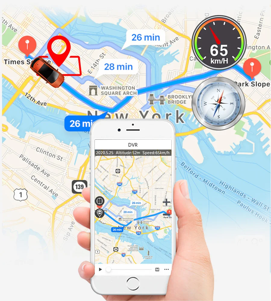 Функция GPS заключается в том, чтобы записывать местоположение маршрута вождения. Мы можем видеть скорость и маршрут вождения на компьютере предоставленным плеером.