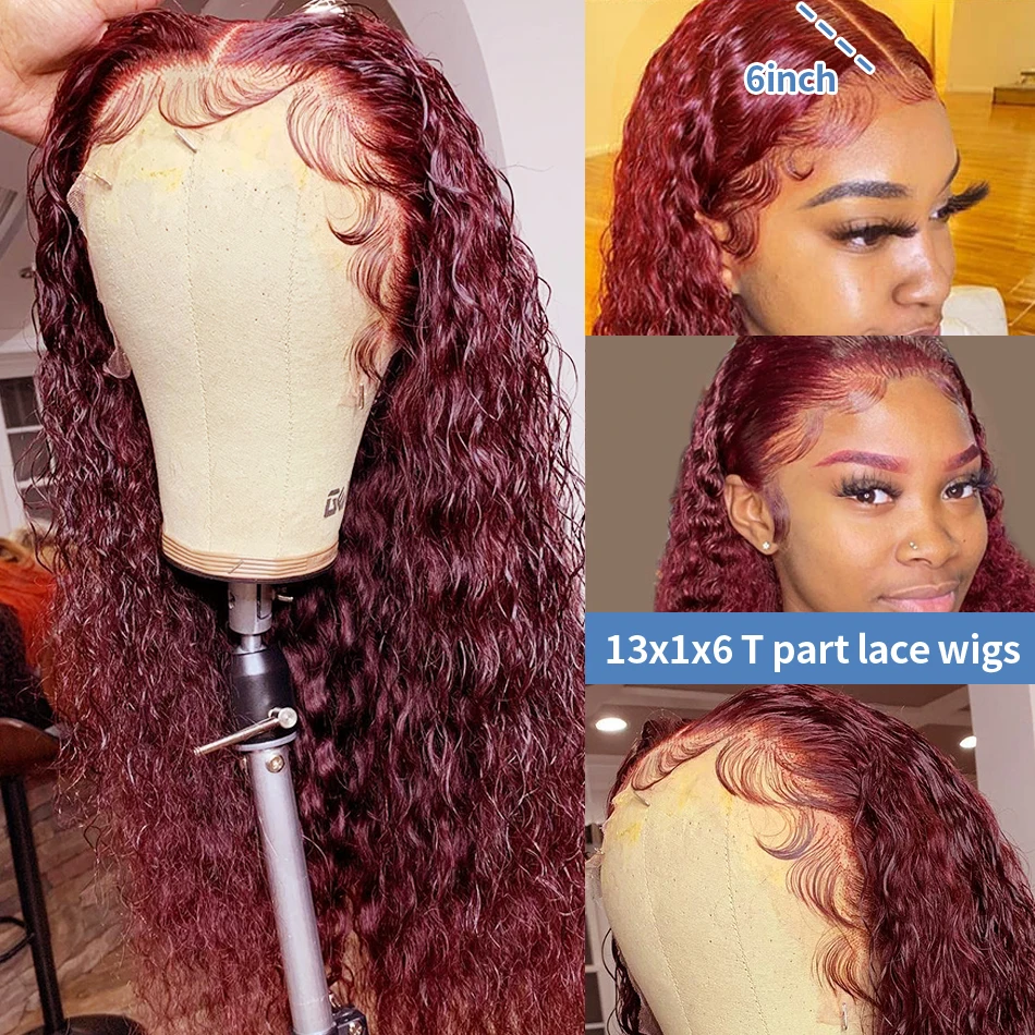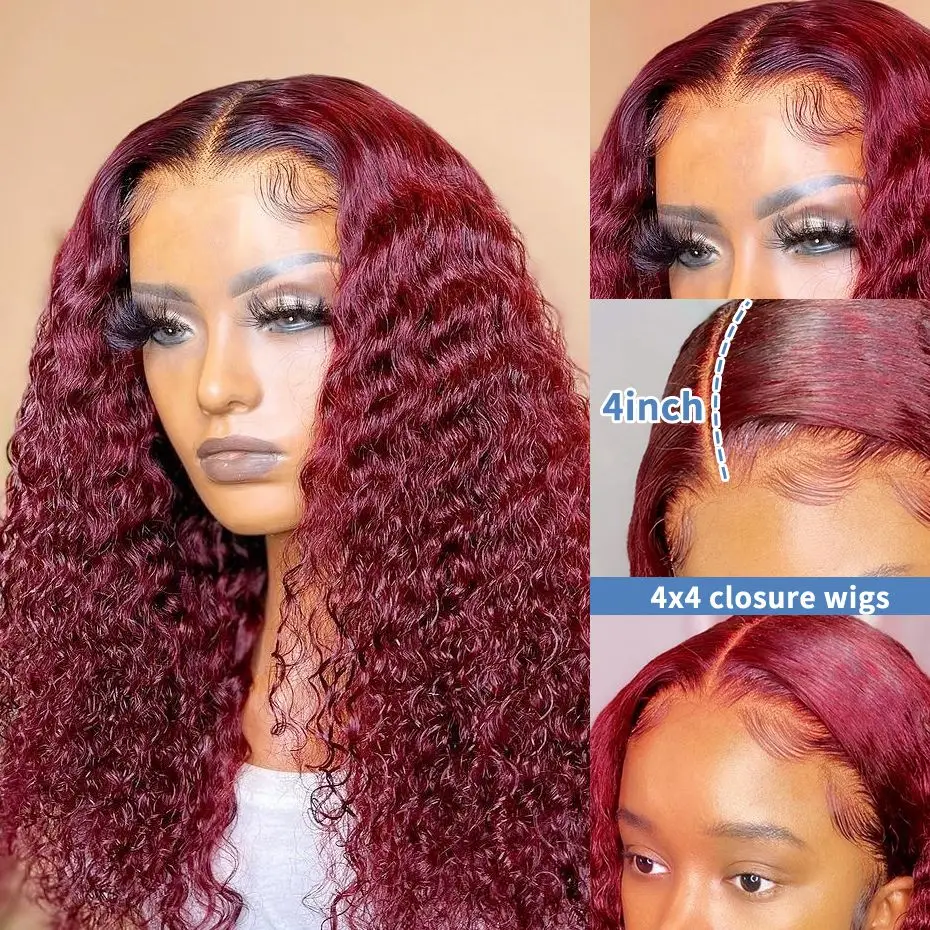 Невидимый красный бордовый 99J цвет короткий кудрявый 4X4 кружевной застежка флэш