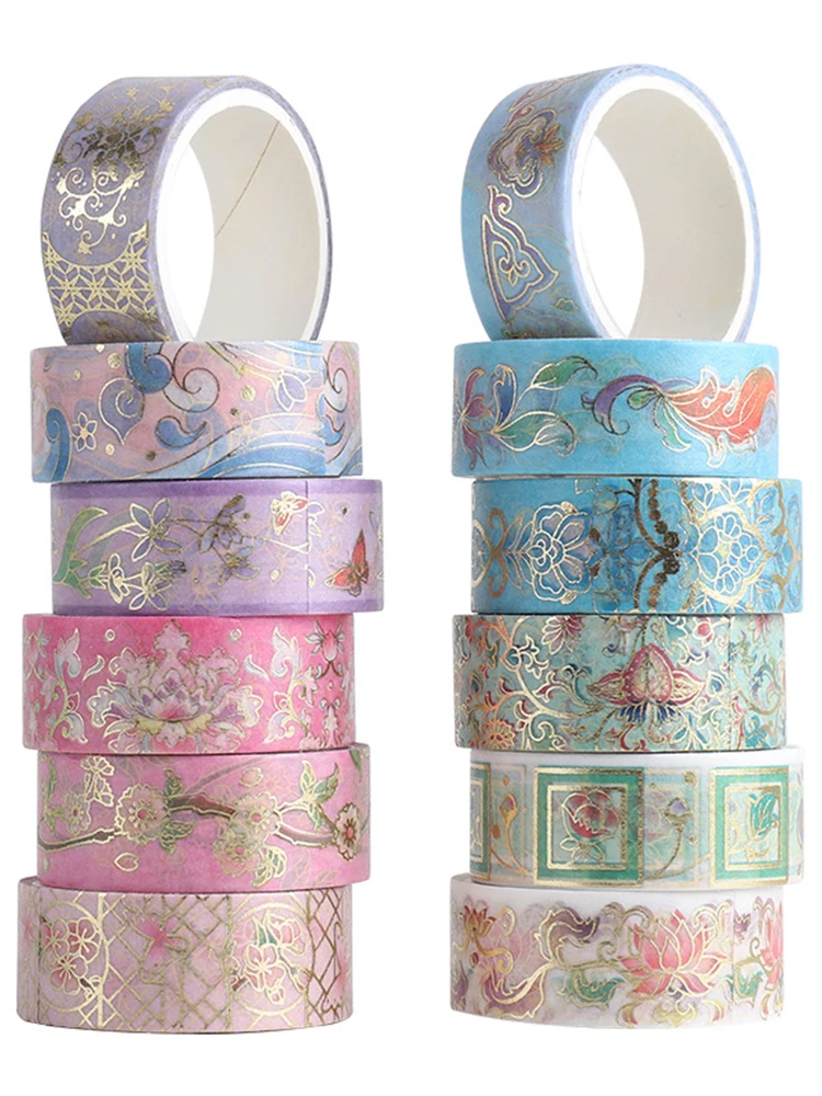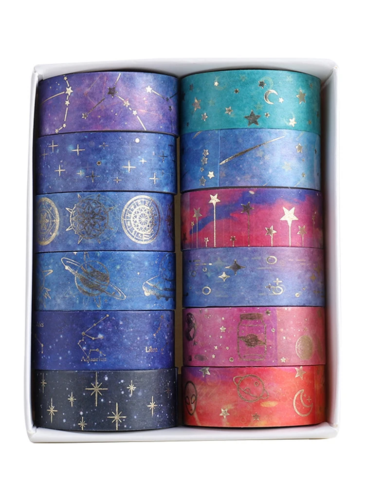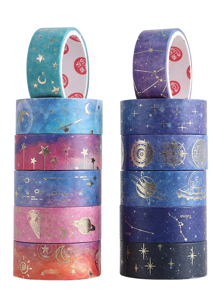 12 шт набор декоративного скотча Васи цветок маскировки ленты винтажные наклейки Adesiva звездное небо Скрапбукинг золотой лист васитап Kawaii украшения