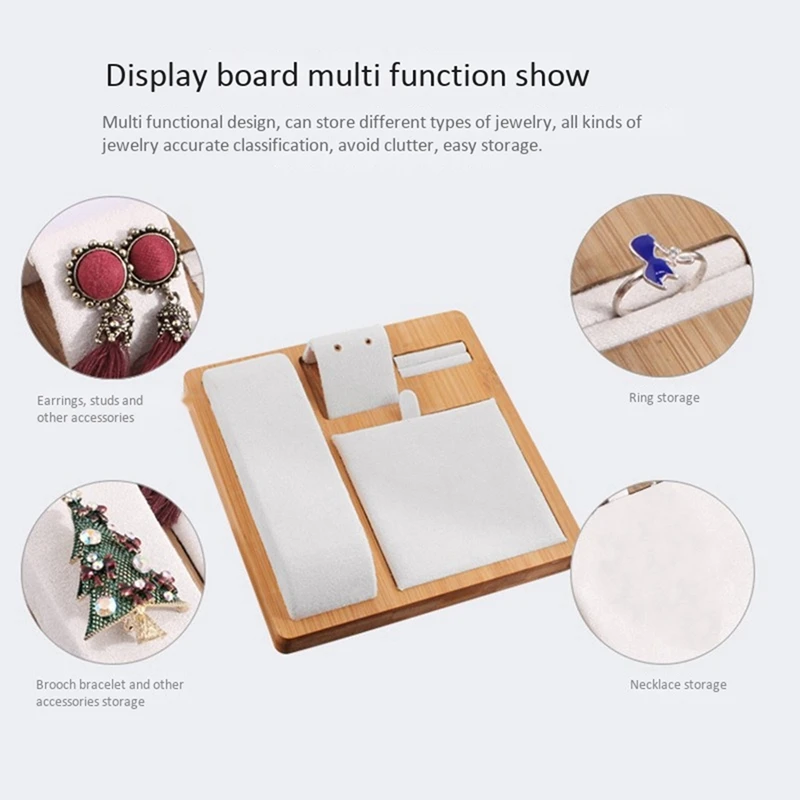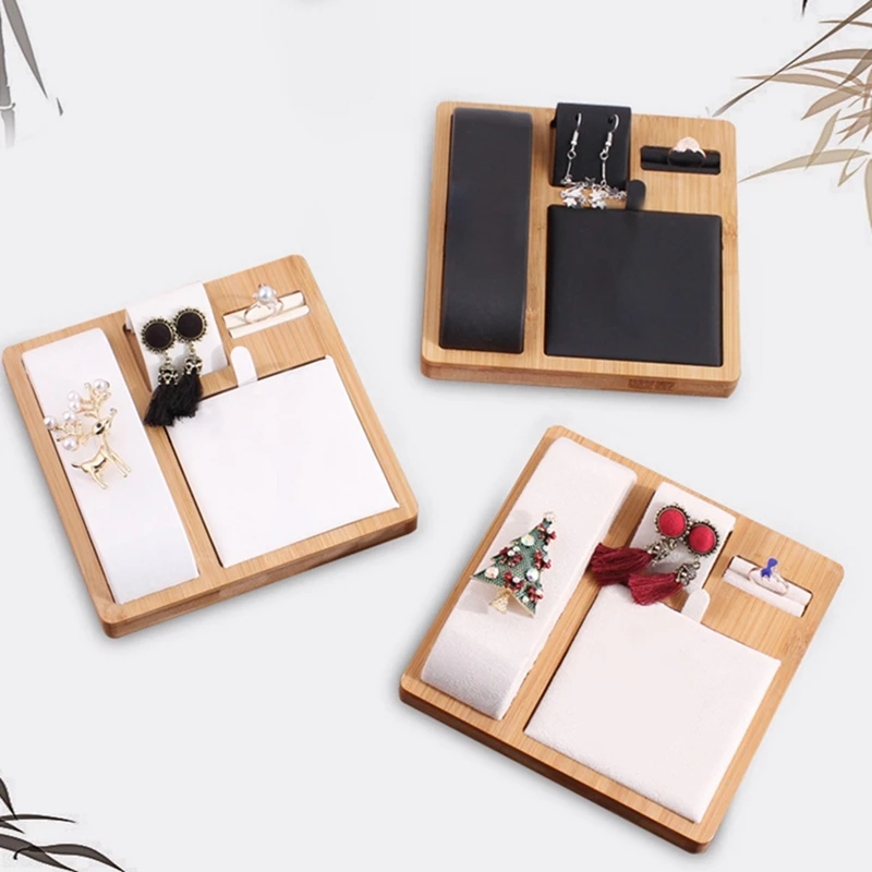 2PCS Bamboo And Wood Creative Jewelry Display Set Display Stand Window Counter Display Decoration, Black & White
