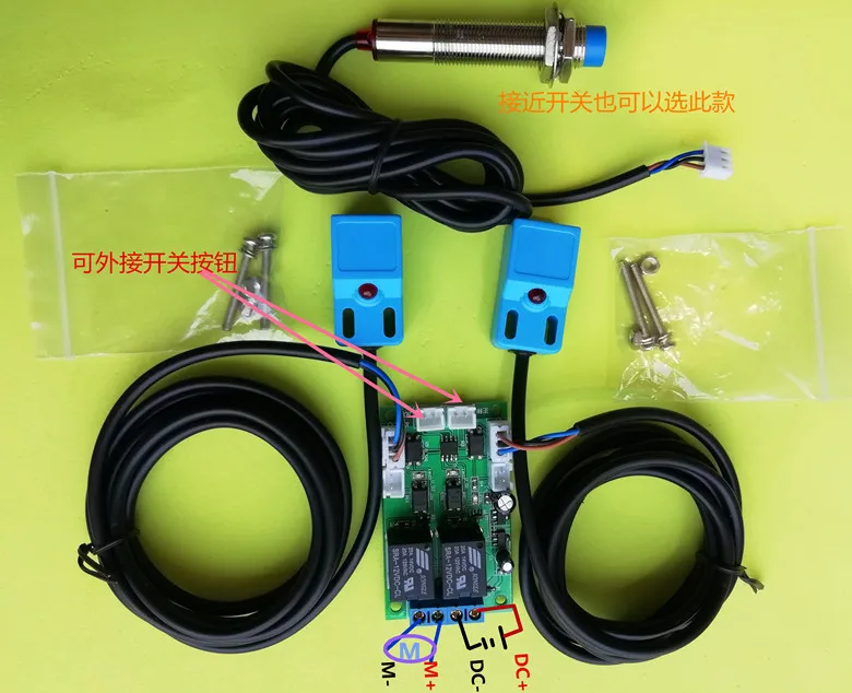 1 :Press the forward button(Reserved wiring port)The motor starts to rotate forward,Right infrared radiation(Metal)Sensor senses stop,Press the reverse switch and the motor starts to reverse,Left infrared radiation(Metal)Sensor senses stop; \