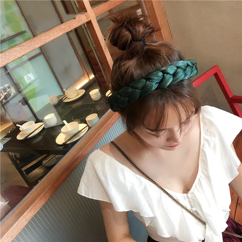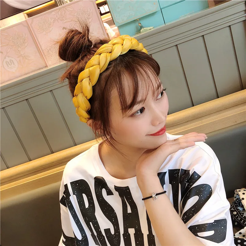 Женские однотонные атласные плетеные повязки для волос в стиле ретро, тонкая широкая повязка на голову для девушек, корейские аксессуары для волос, головные уборы