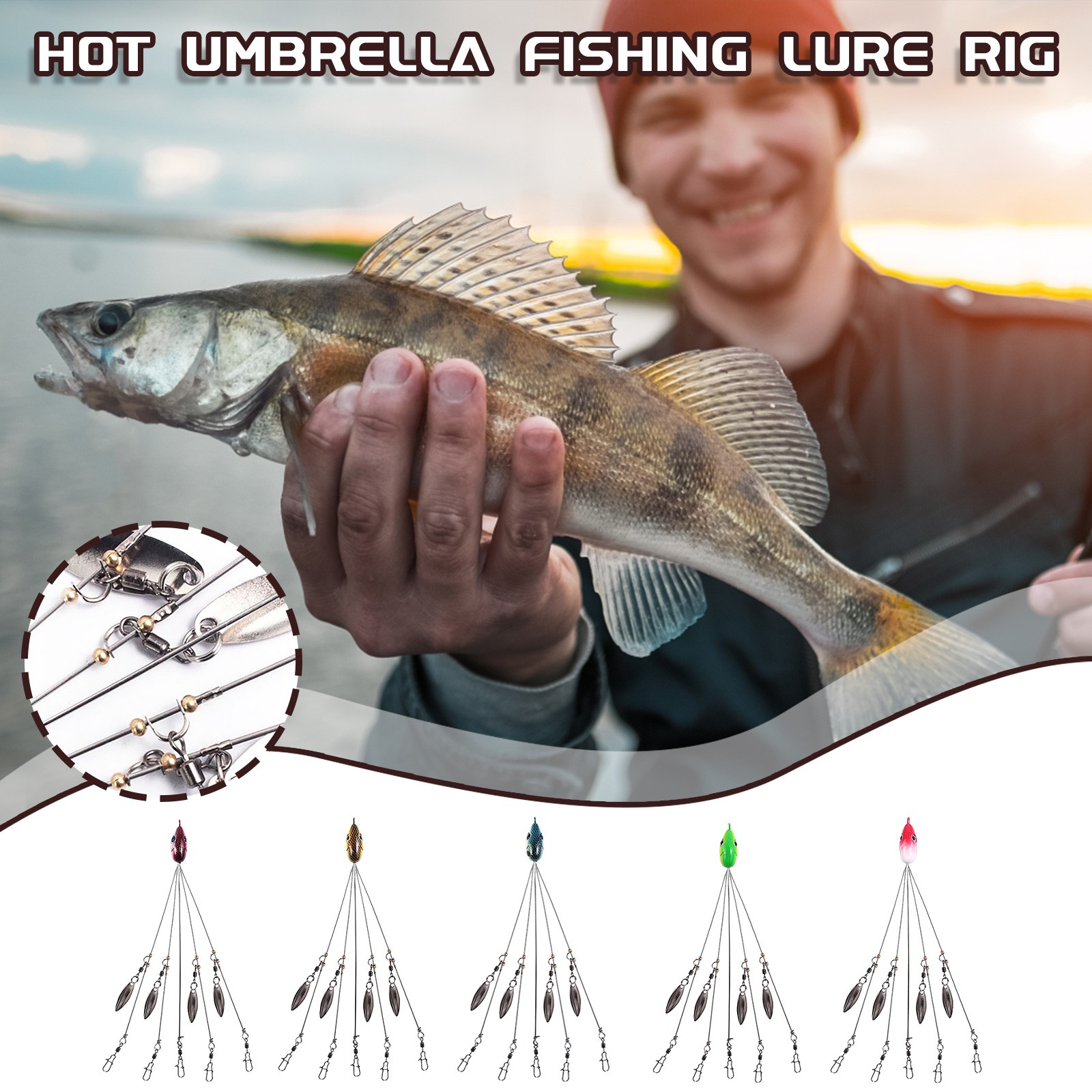 Hot Umbrella Fishing Rig with bright fake bait designed for ultra-light fishing