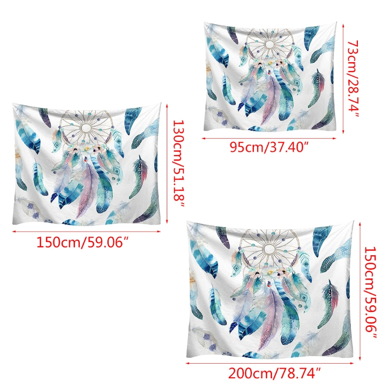 Nordic Style Hippie Tapestry Colorful Dreamcatcher Feather Printed Wall Hanging Blanket Bohemian Art Carpet Background Home