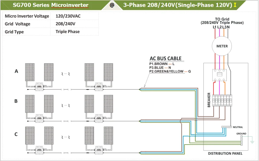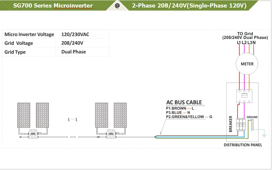 3. Однофазный выход, гибкие 3-фазные PV системы4.2.4G беспроводная связь и мониторинг5. До 7 единиц (230 В) на ветку6. Настраиваемый диапазон различного входного напряжения (DC, PV)7. Интегрированный кабель шины переменного тока, готов к использованию8. Низкая стоимость, простая установкаБазовая структура