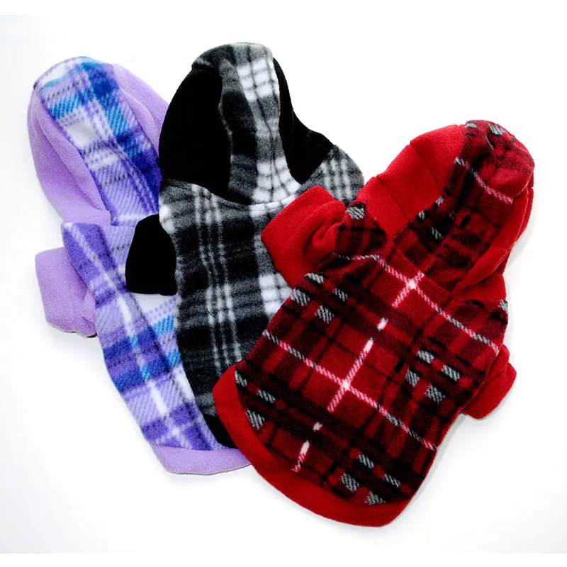 Свитер с капюшоном для домашних животных, изготовленный из флиса, мягкий и удобный, приятный для кожи и нежный. Клетчатый дизайн, классический и модный, разные цвета на выбор.