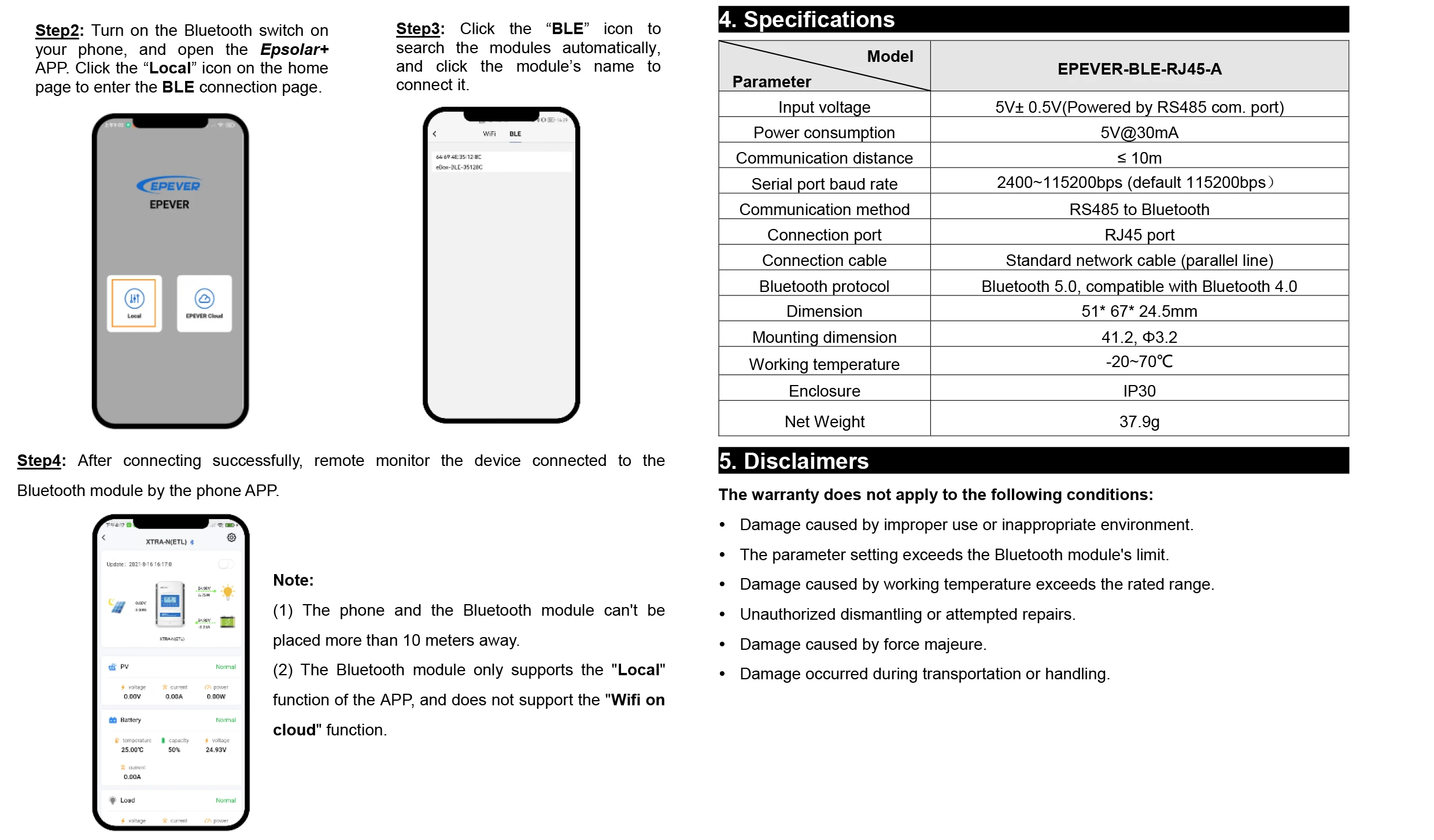 EPEVER-BLE-RJ45-A-это новый модуль Bluetooth, подходящий для солнечного контроллера EPEVER,