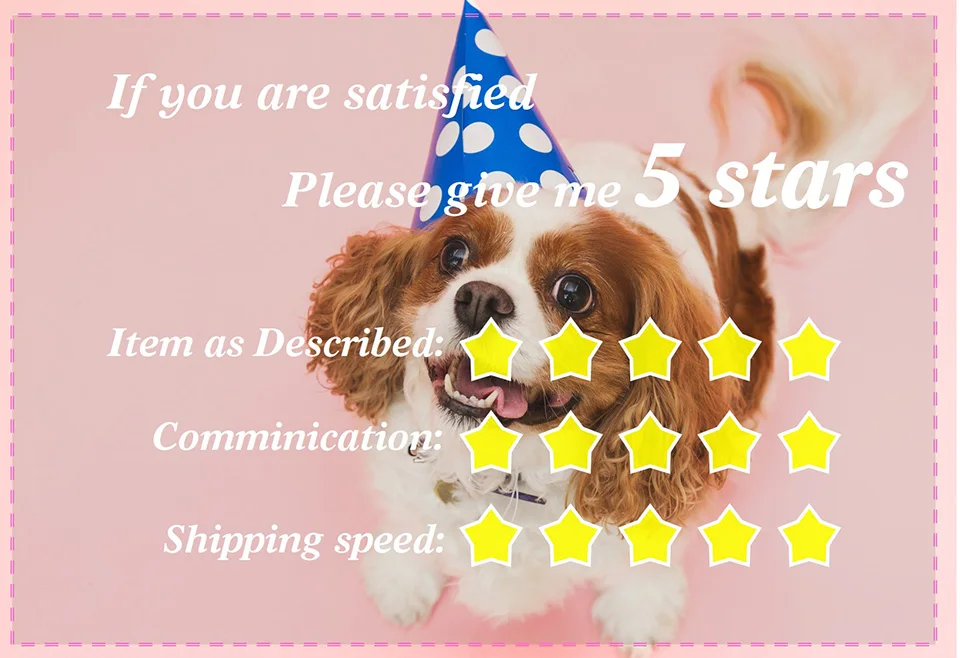 Поскольку ваши отзывы очень важны для развития нашего бизнеса, мы искренне приглашаем вас оставить нам положительные отзывы, если вы удовлетворены нашей продукцией и обслуживанием. Это займет всего 1 минуту, но эта 1 минута имеет чрезвычайно важное значение для нас.